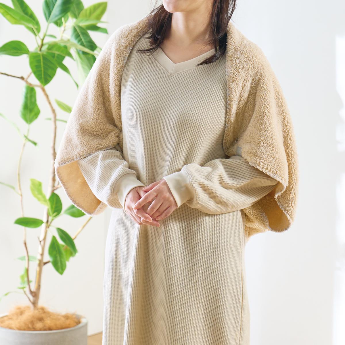 ひざ掛けを収納できるポーチは湯たんぽカバーとしても使えます。※湯たんぽは商品に含まれません