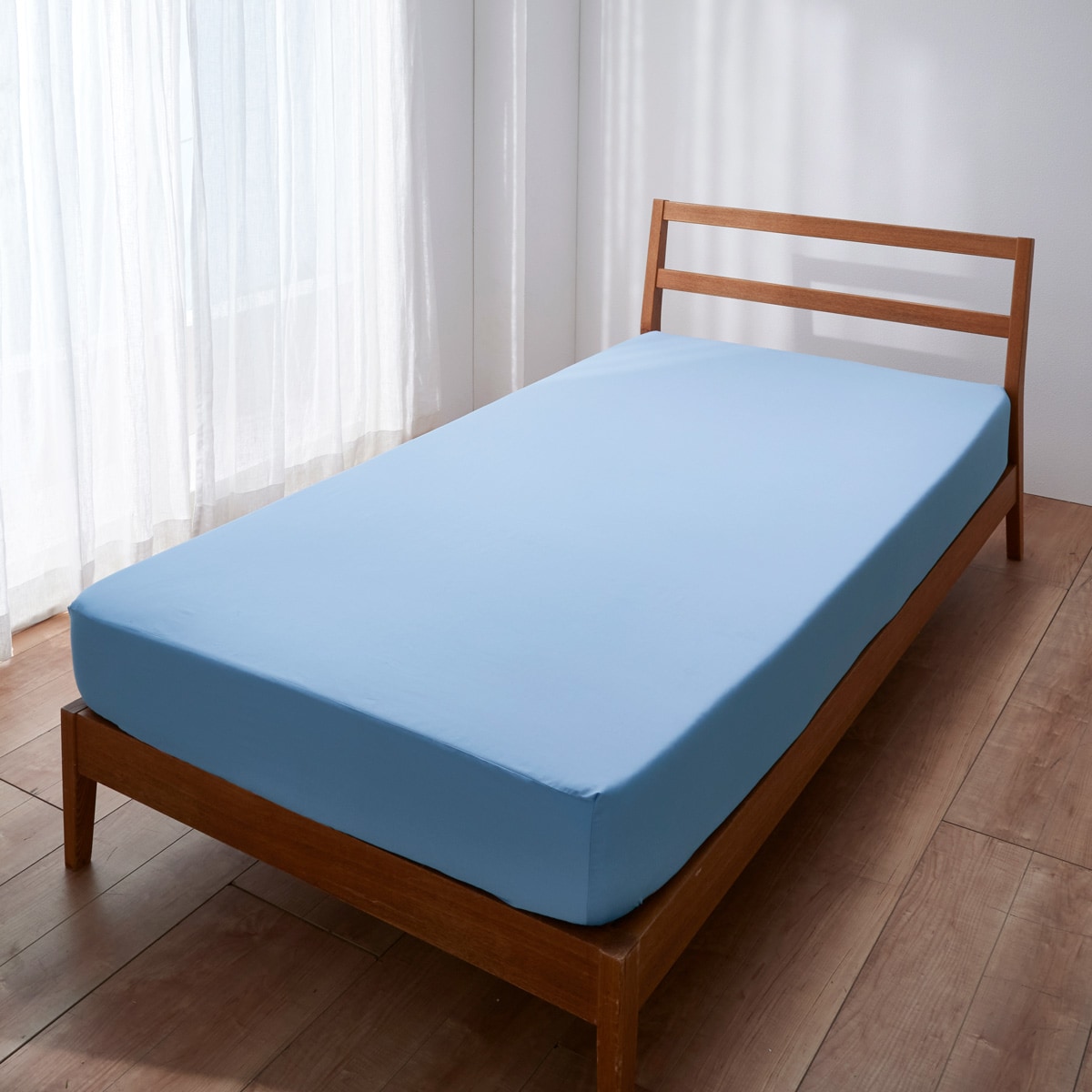 ボックスシーツは全周ゴム仕様でもたつきが少なくキレイにフィット。着脱簡単でズレにくい。