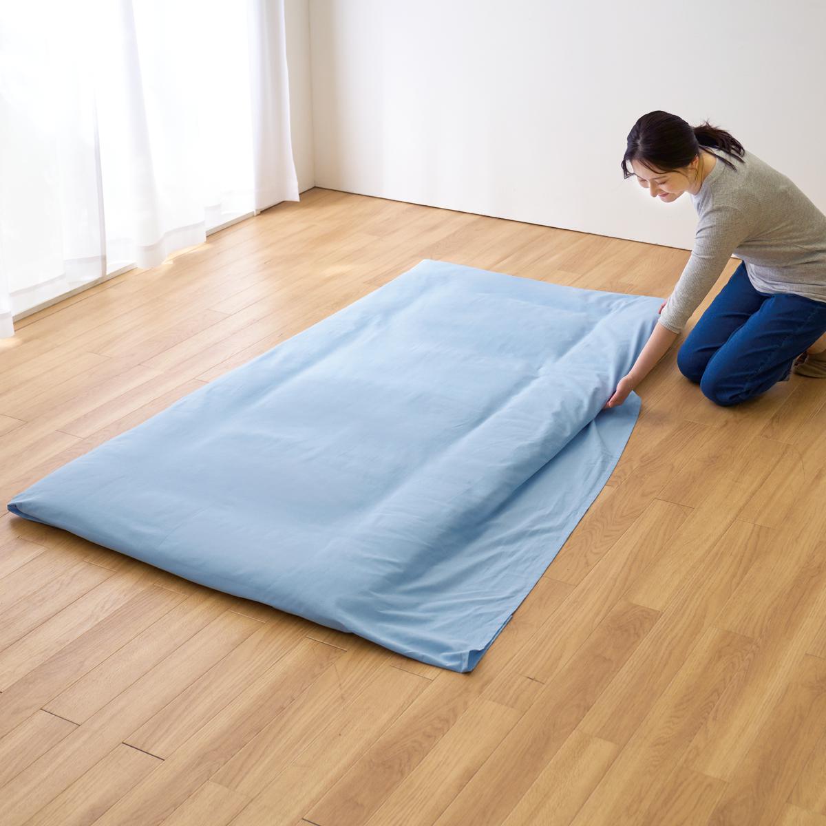 敷き布団の厚さに合わせて折り込めるので、サイズ調整が可能です。