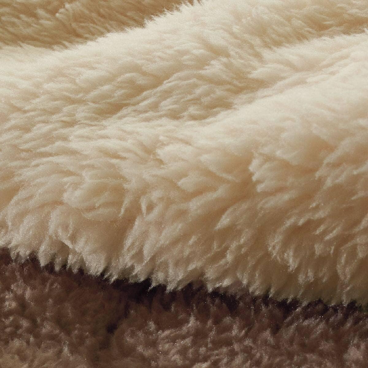 生地拡大 (上から) アイボリホワイト・オークベージュ毛足の密度と長さを調整し、毛羽落ちをしにくくしています。
