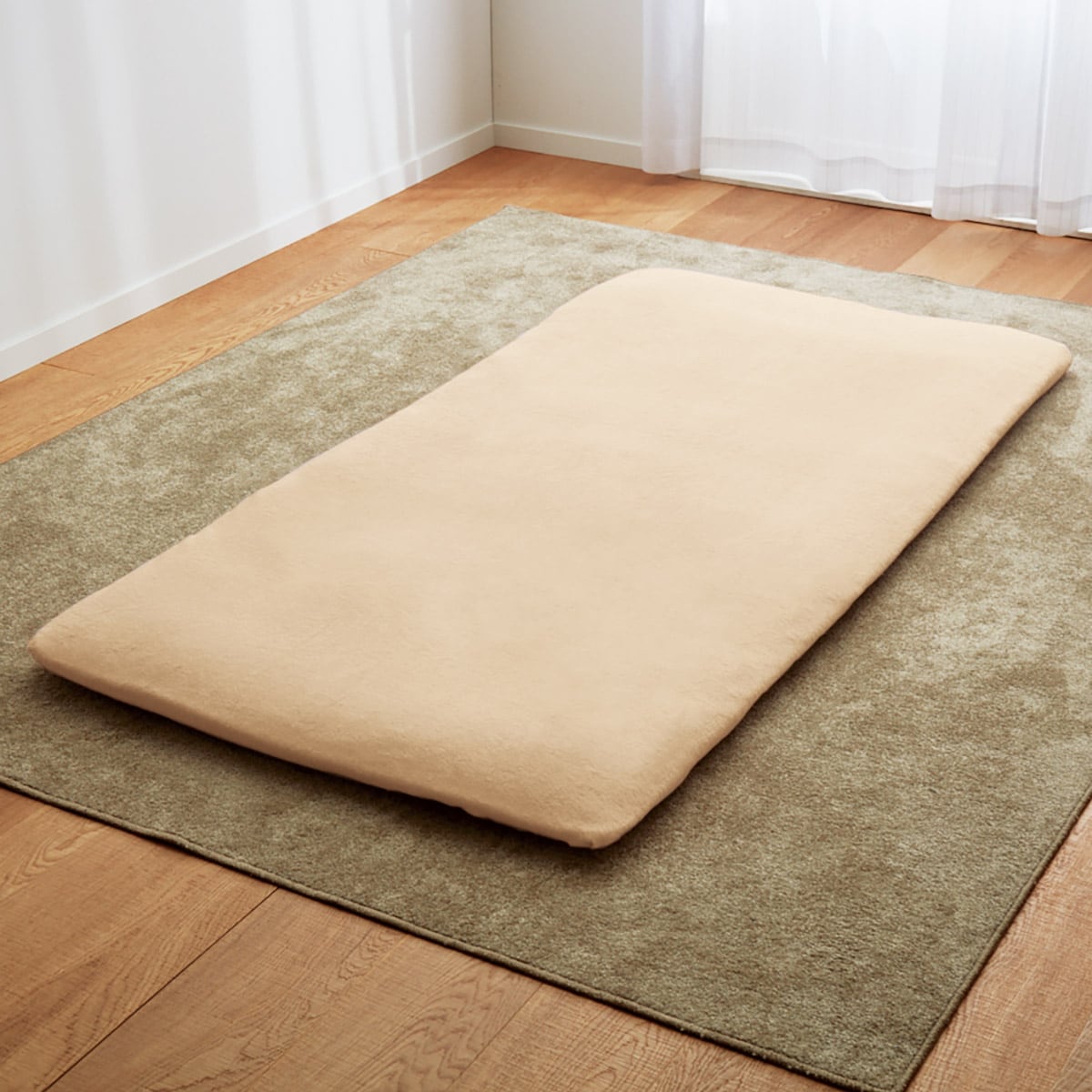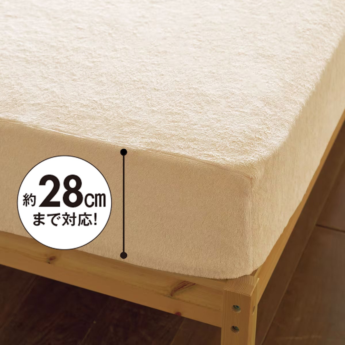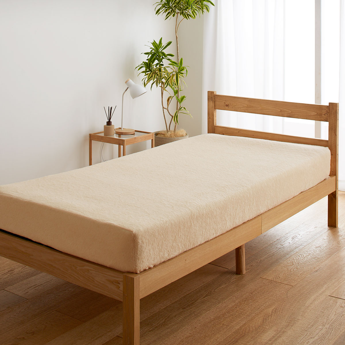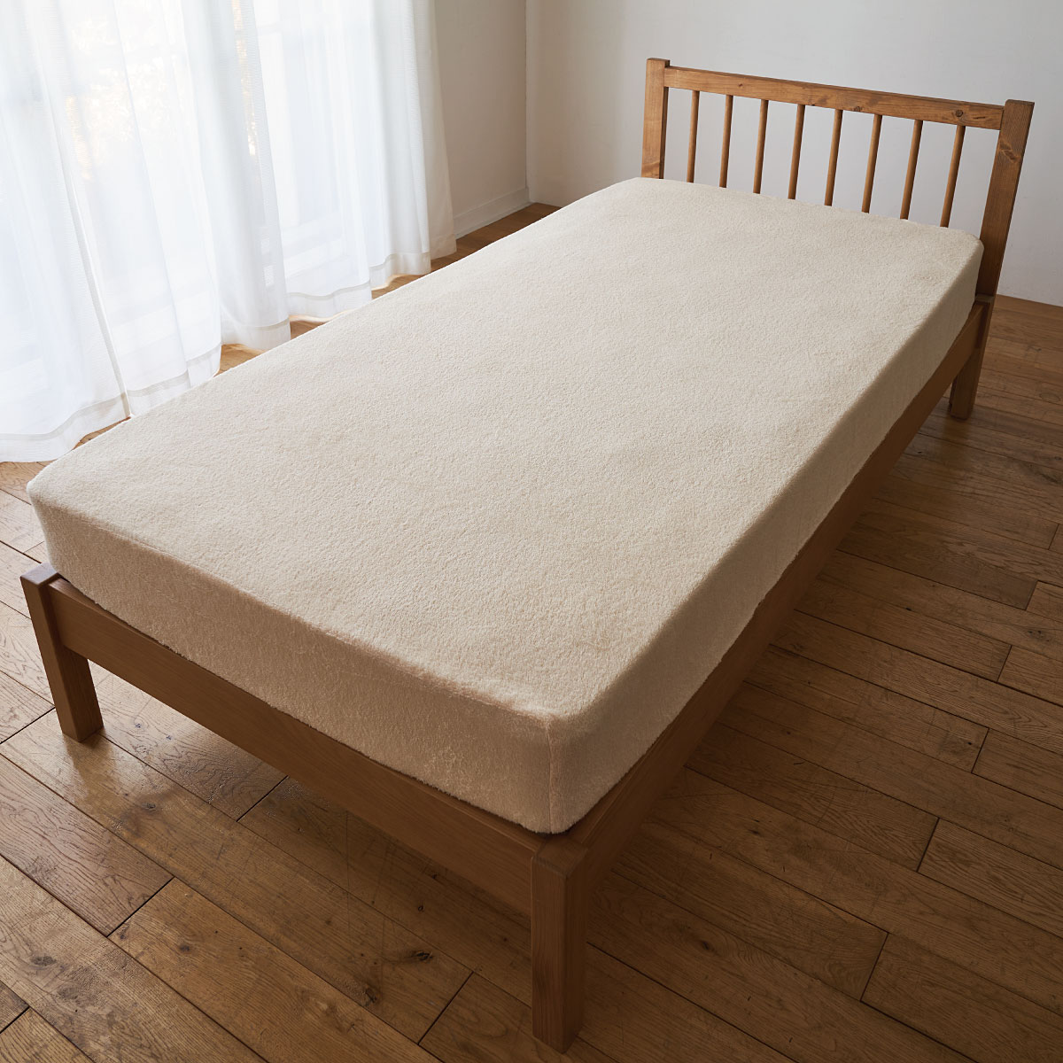 アイボリベージュ マットレス用のボックスシーツはサイドまですっきりカバー。