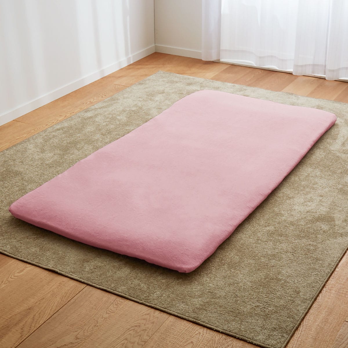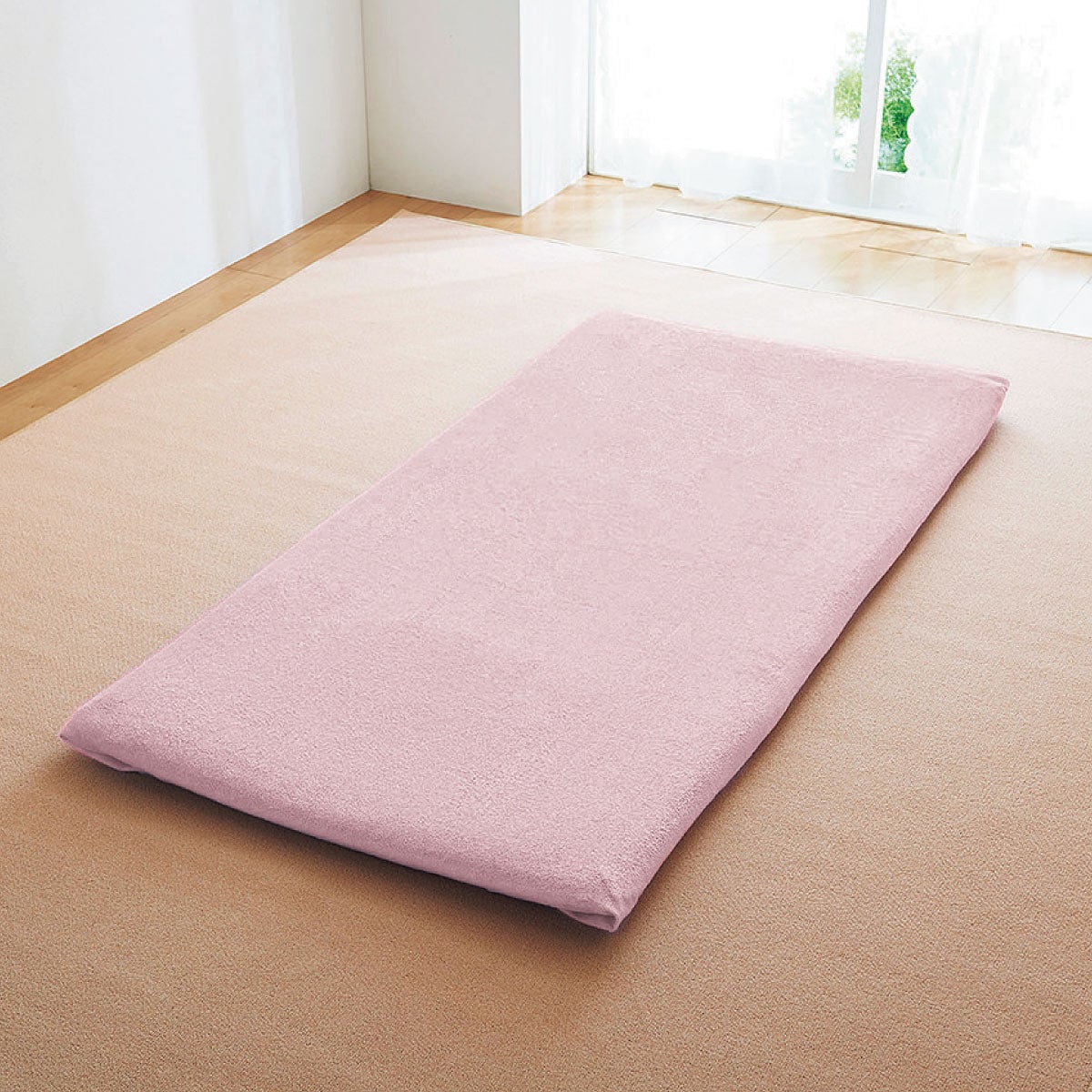 ミスティピンク敷き布団用のフラットシーツはピシッと折り込み式。