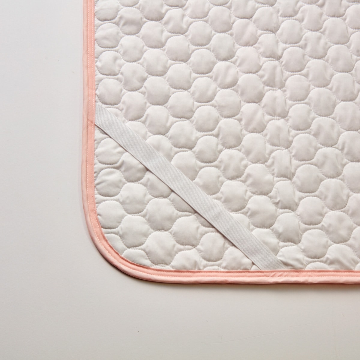 やわらかな肌ざわりのマイヤータオル生地で作ったパッドシーツです。長めのパイルは、吸水性の高い綿100%素材。バスタオルのように汗を吸い取ってくれるので、汗かきさんにもおすすめです。パイル糸を基布にからませて織り上げるマイヤー編みは、通常のタオル織りに比べてほつれにくいのが特長。パイル抜けがほとんどなく、気軽にお洗濯できます。中わた入りのキルティングで寝心地もアップ。裏側は四隅強化ゴム仕様でズレにくく、セットも簡単です