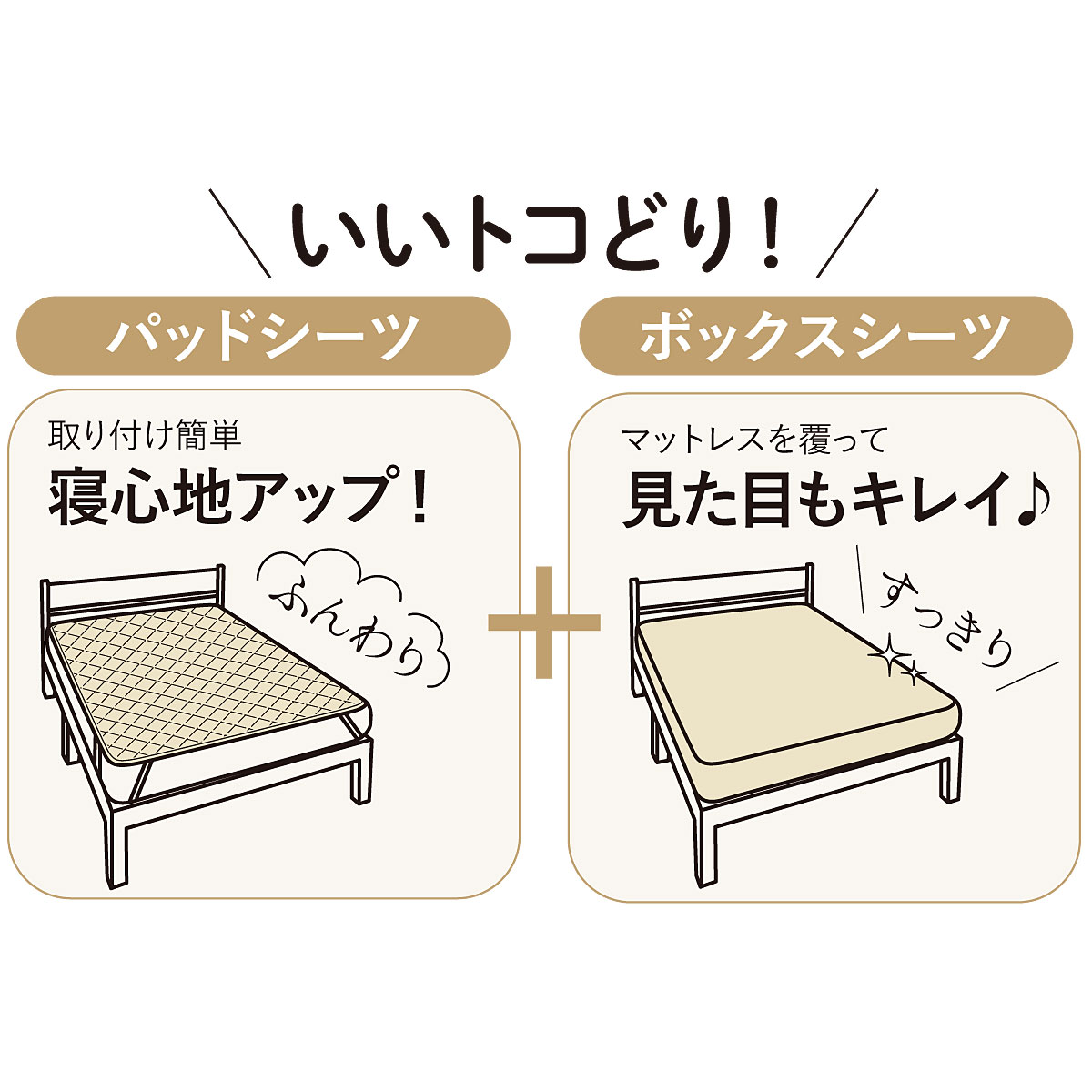パッドシーツとボックスシーツ、2つのイイところを一体化させたアイデアシーツです。