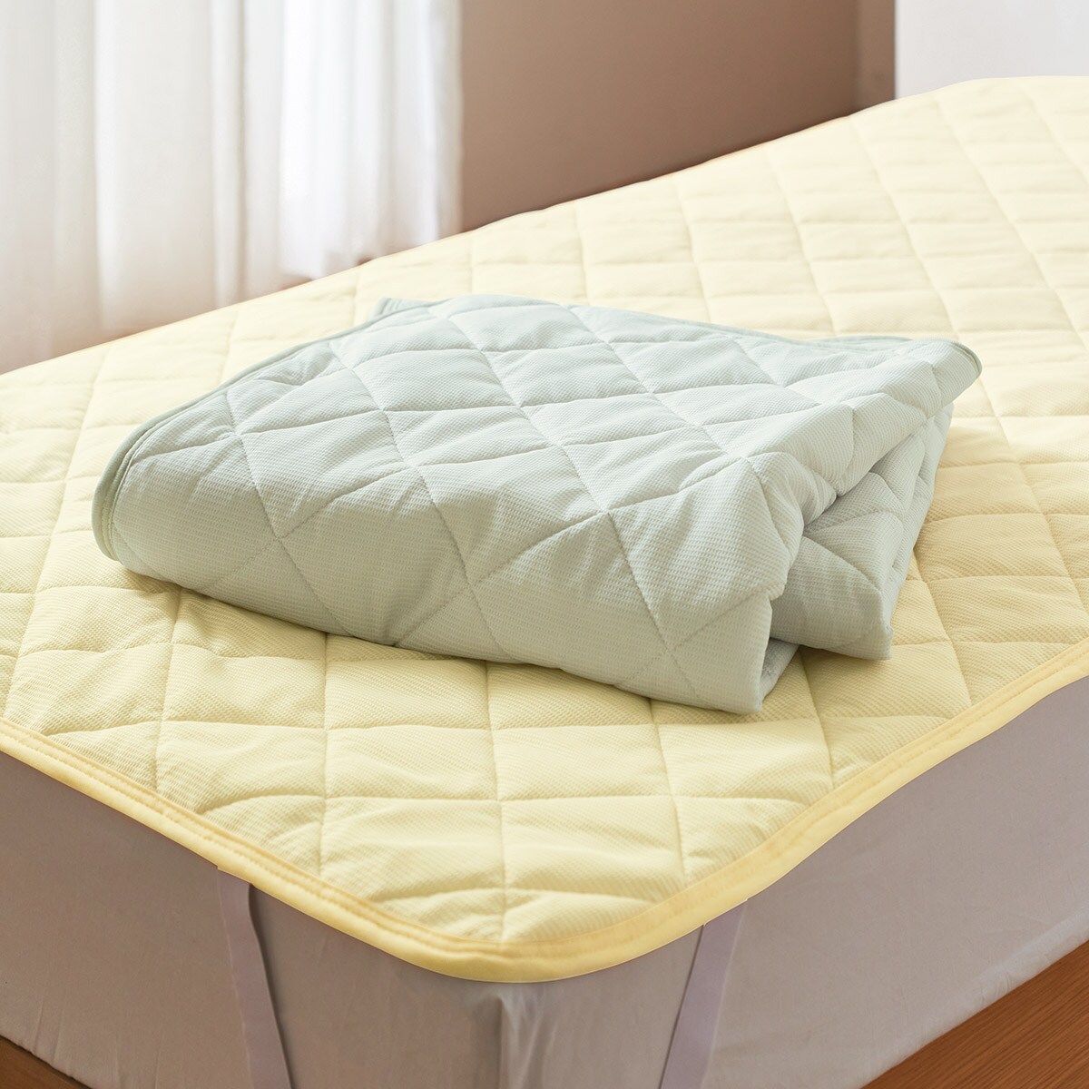 寝汗をかいてもサラサラで心地いい! 吸汗速乾素材「ルクール」を使用したパッドシーツです。上品な色合いがお部屋をエレガントな印象に。敷き布団にもマットレスにも使えます。