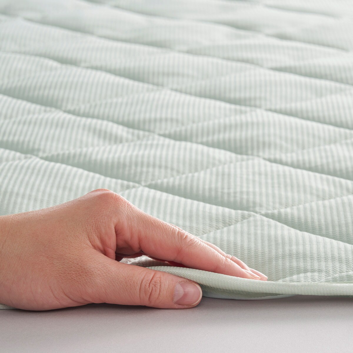 シワになりにくく、乾きやすいのでお手入れ簡単! 吸汗速乾性に優れた、特殊機能素材「LUCOOL®(ルクール)」を使用したワッフル素材のパッドシーツです。心地よい肌ざわりとシンプルなデザインで、機能性とエレガントさを両立させました。裏側は四隅強化ゴム仕様でズレにくく、セットも簡単。汗をかいてもサラッと快適なので寝苦しい夜にもおすすめです。ご家庭の洗濯機で気軽に洗えるので、清潔にお使いいただけます。