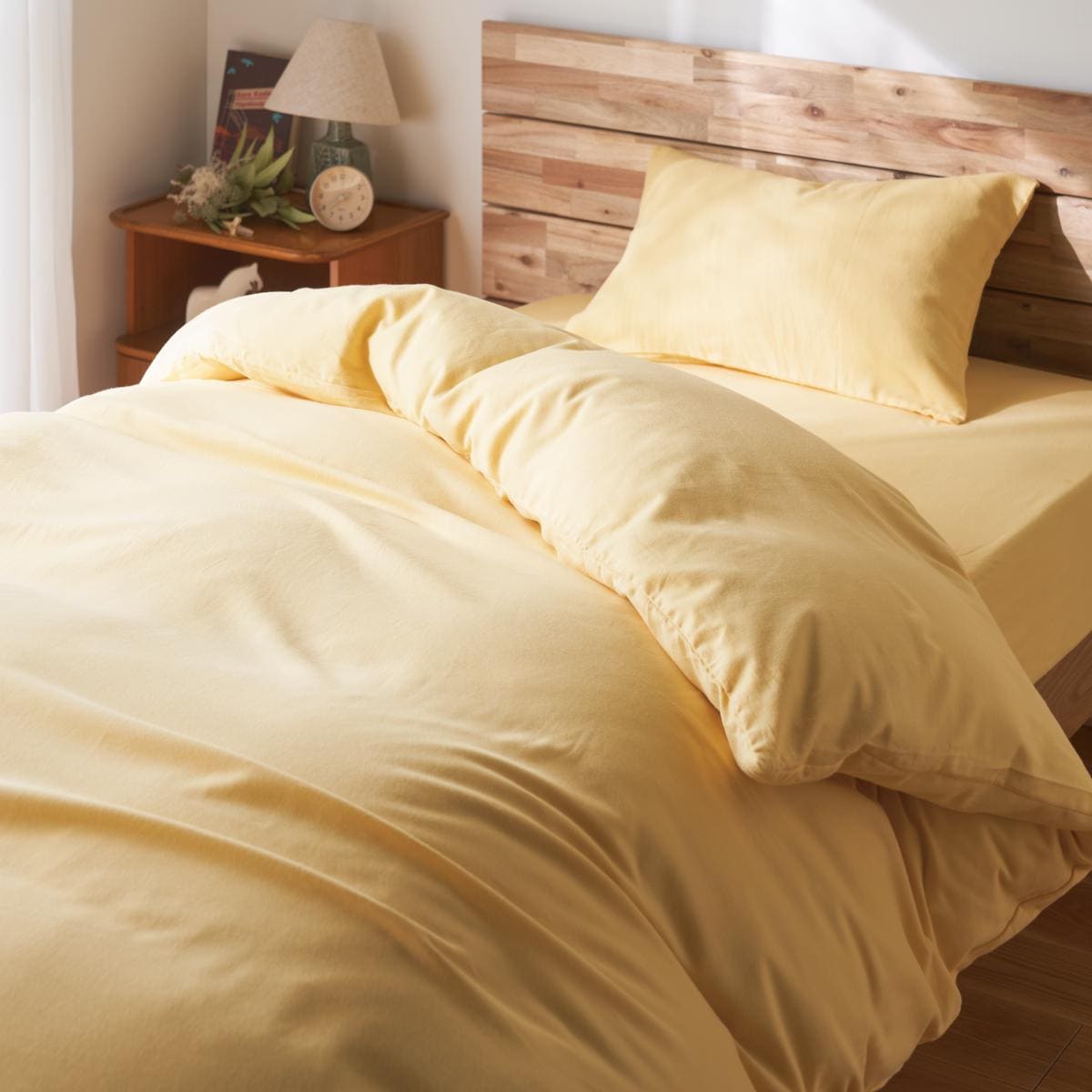 (左から) イエロー・グレー ※商品はボックスシーツです。綿100%ネルシリーズを組み合わせて自分だけのコーディネートを。