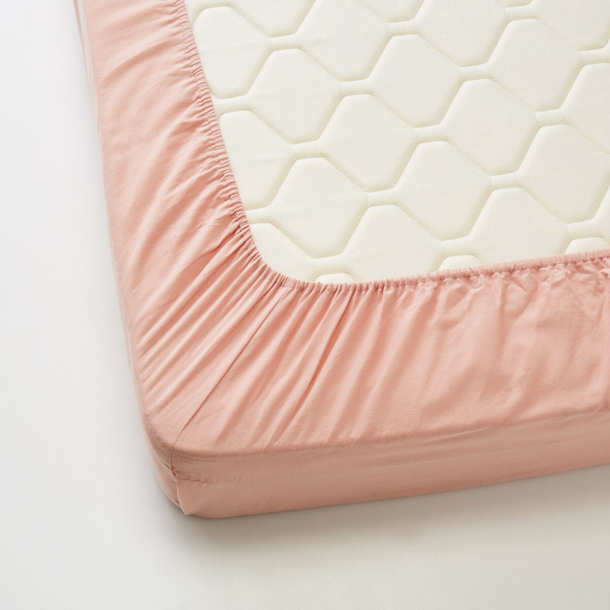 ピンクマットレスのサイドまで覆えて見た目すっきり。