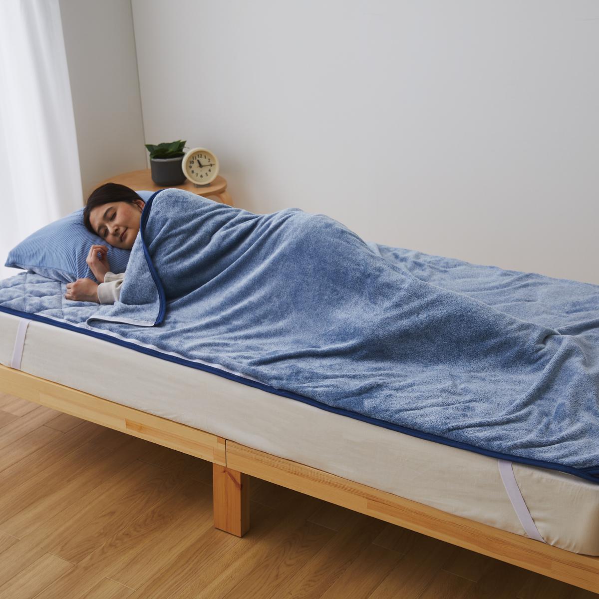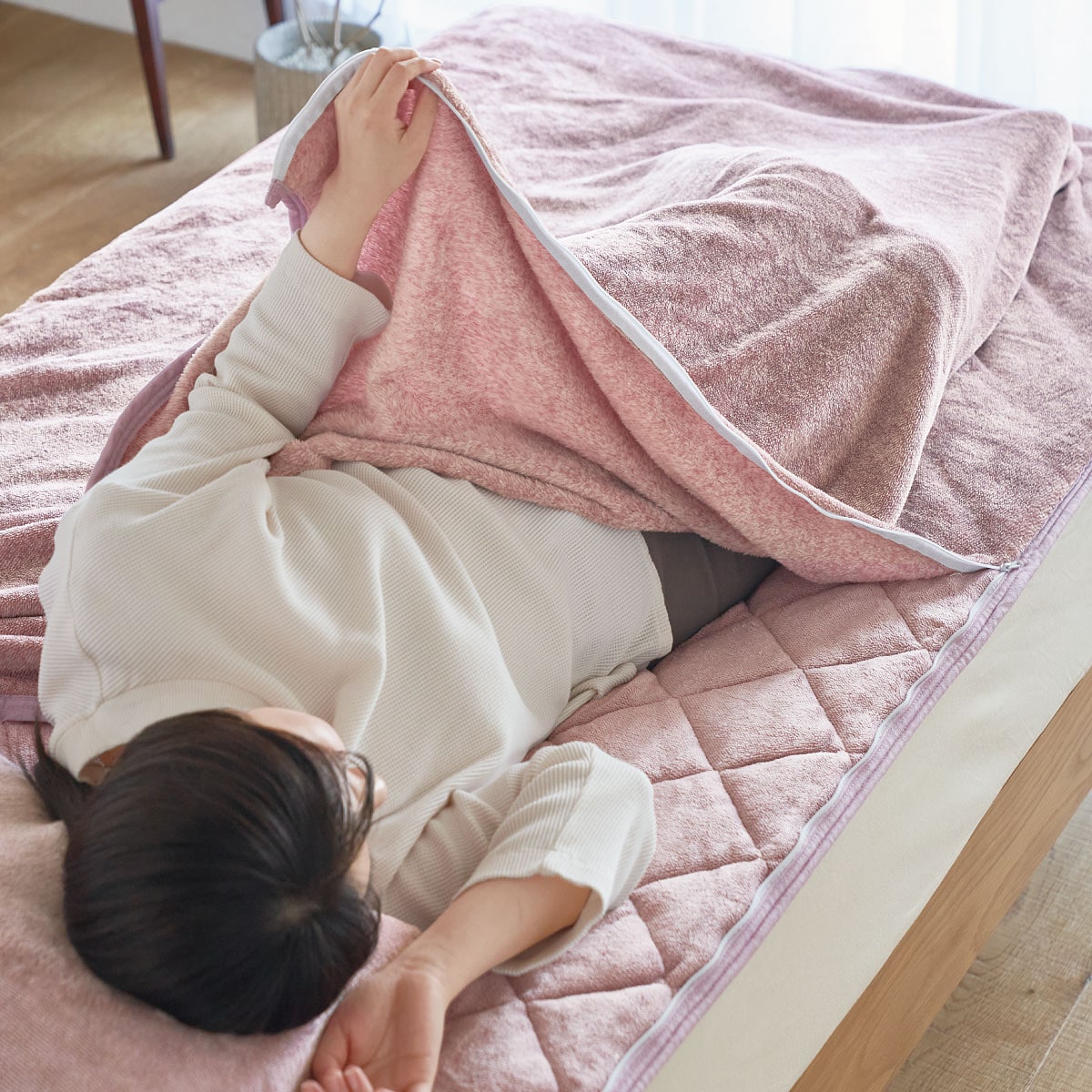 パッドシーツと毛布が一体となったポケット状だから暖まった空気も逃さず足元までぽかぽか!