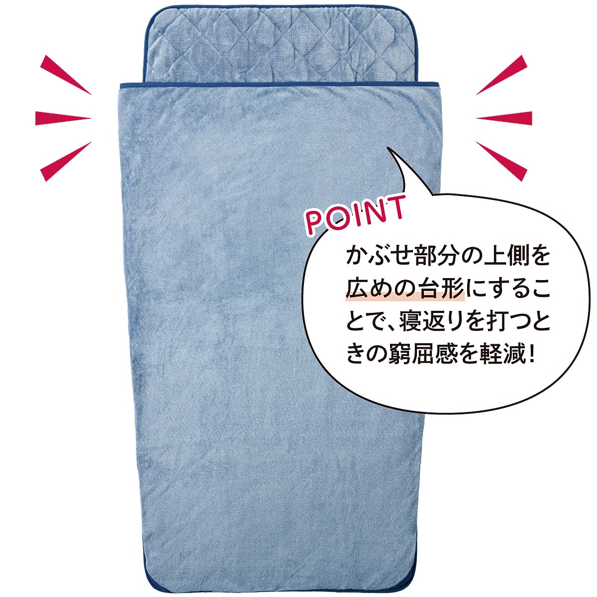 パウダーブルーかぶせ部分を台形にすることで寝返りを打つ時の窮屈さを解消!