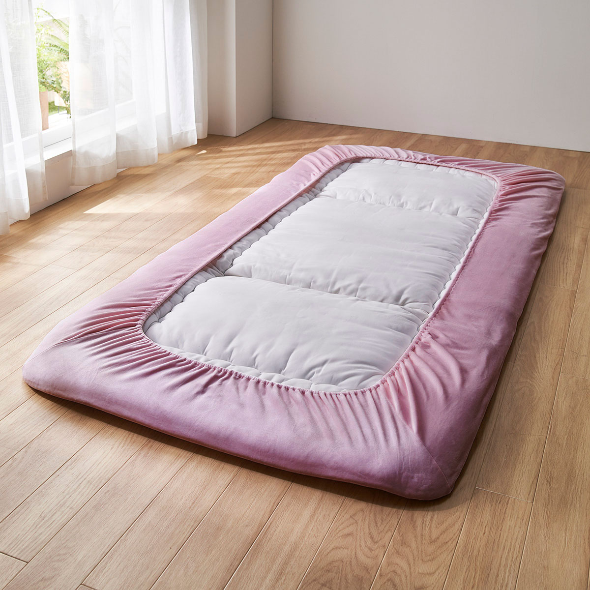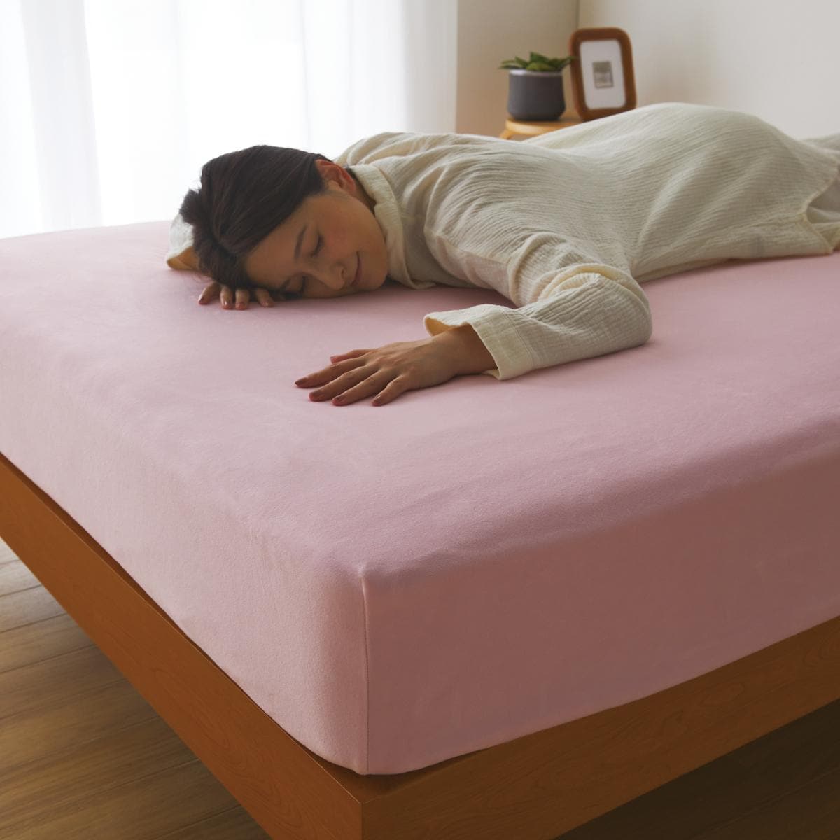 ピンクマイクロファイバー生地で仕上げたのびのびあったかシーツです。