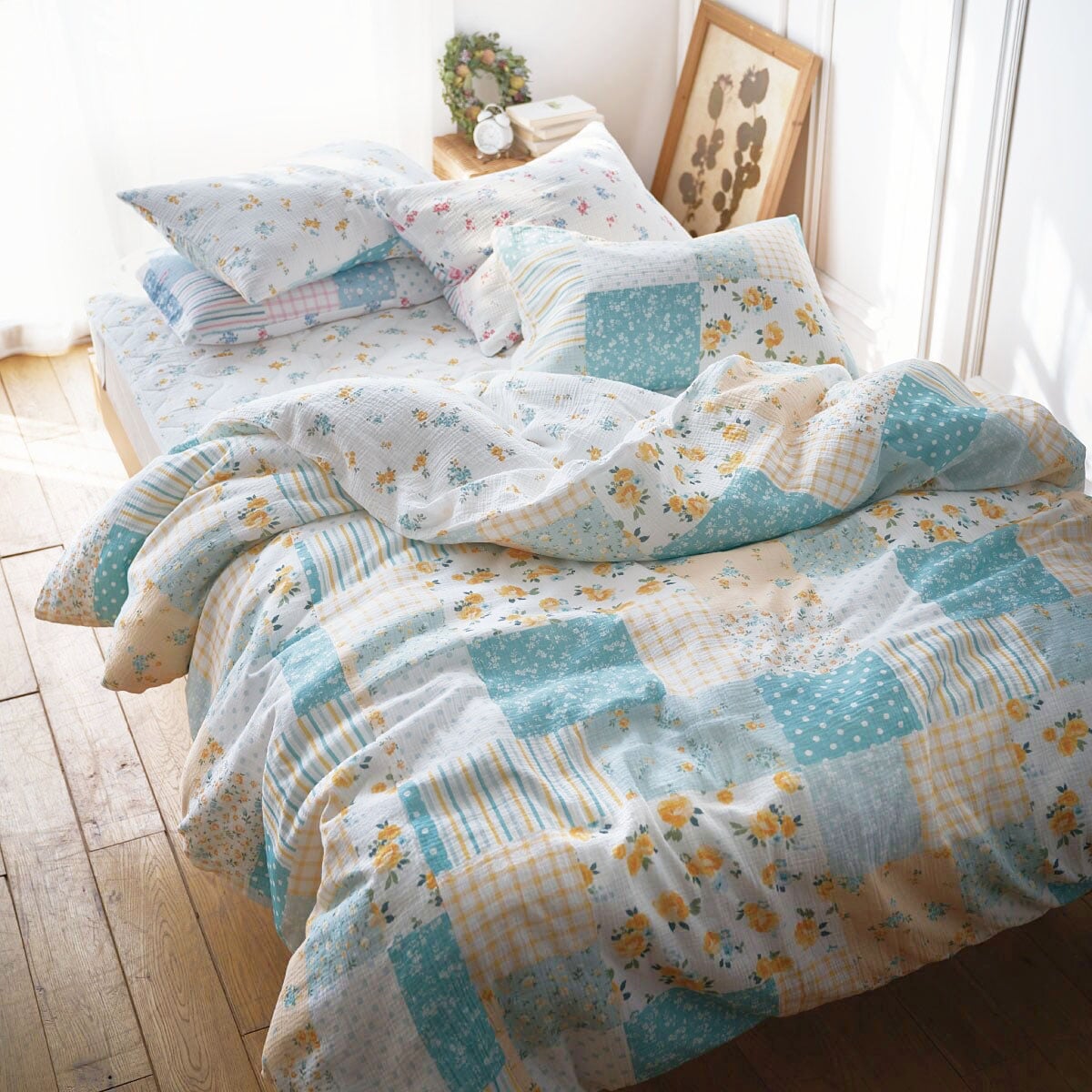 パッドシーツ(綿100%ダブルガーゼ・パッチワーク柄)
