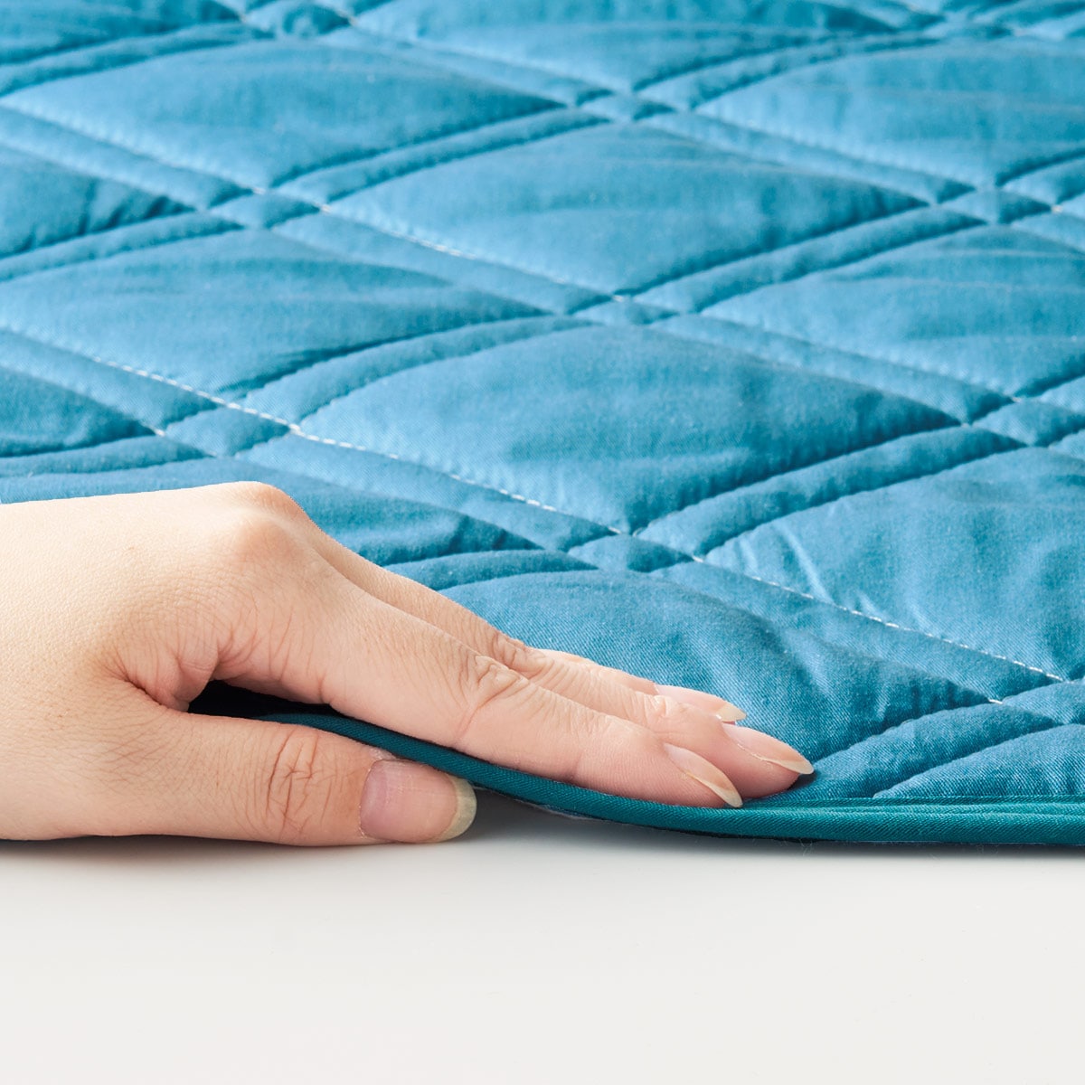 ネイビー(デニム風)中わた入りのキルティングでほどよい厚みです。