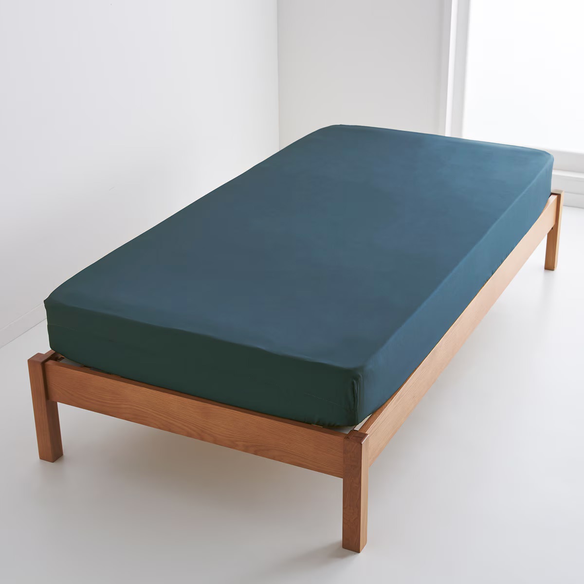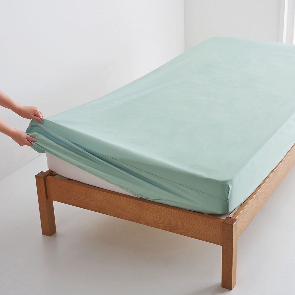 ブルーグリーンシワになりにくくマットレスにしっかりフィット! イージーケアボックスシーツです。