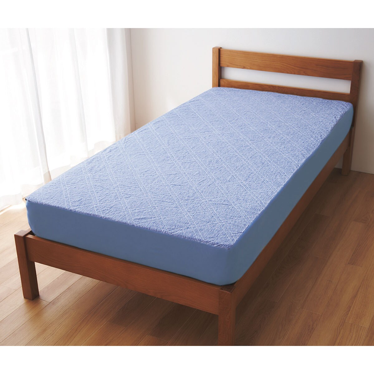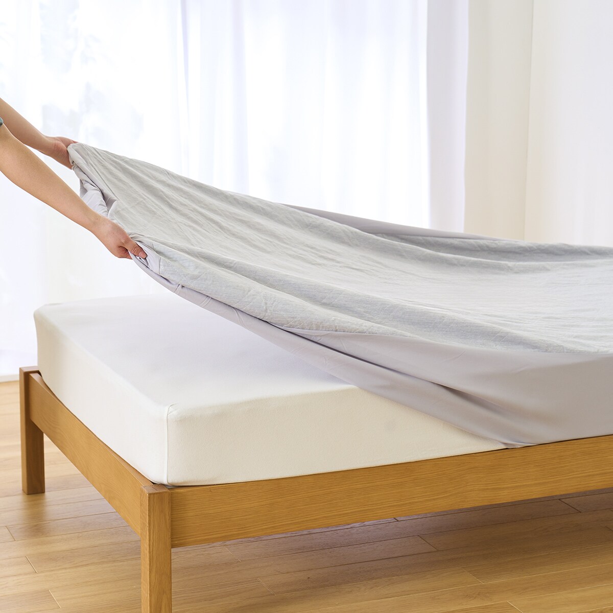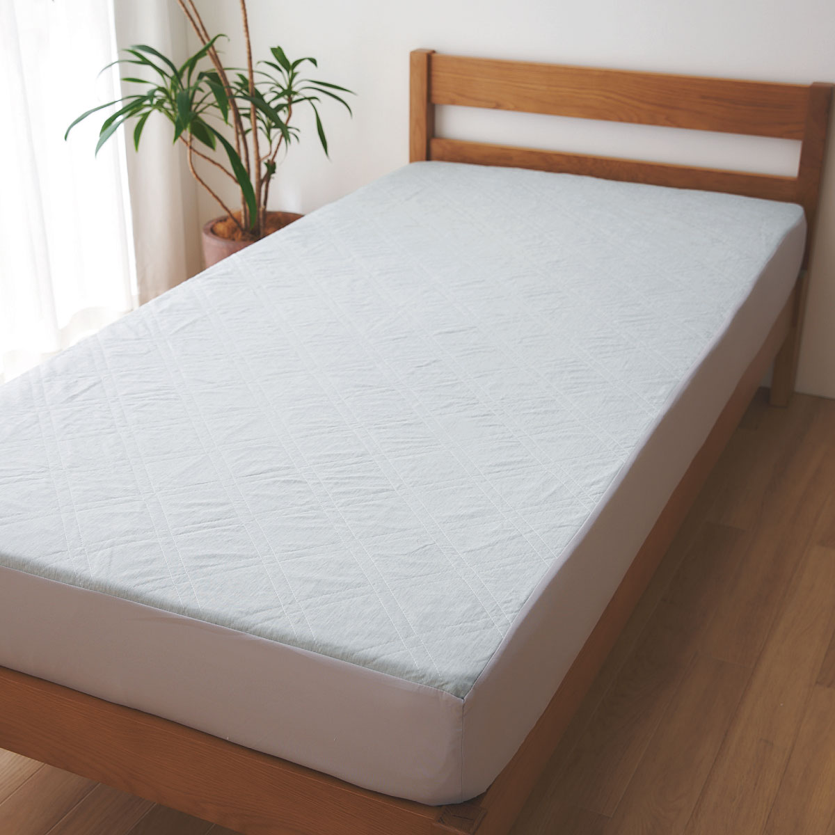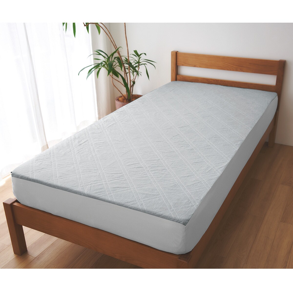 グレーマットレスのサイドまで覆ってスッキリ。