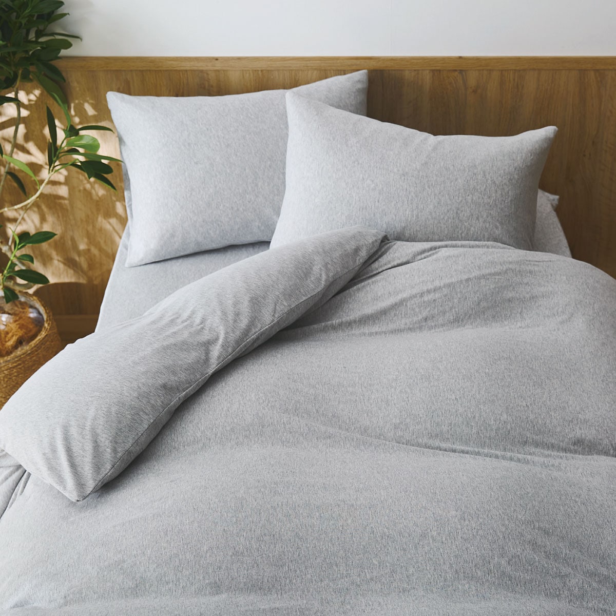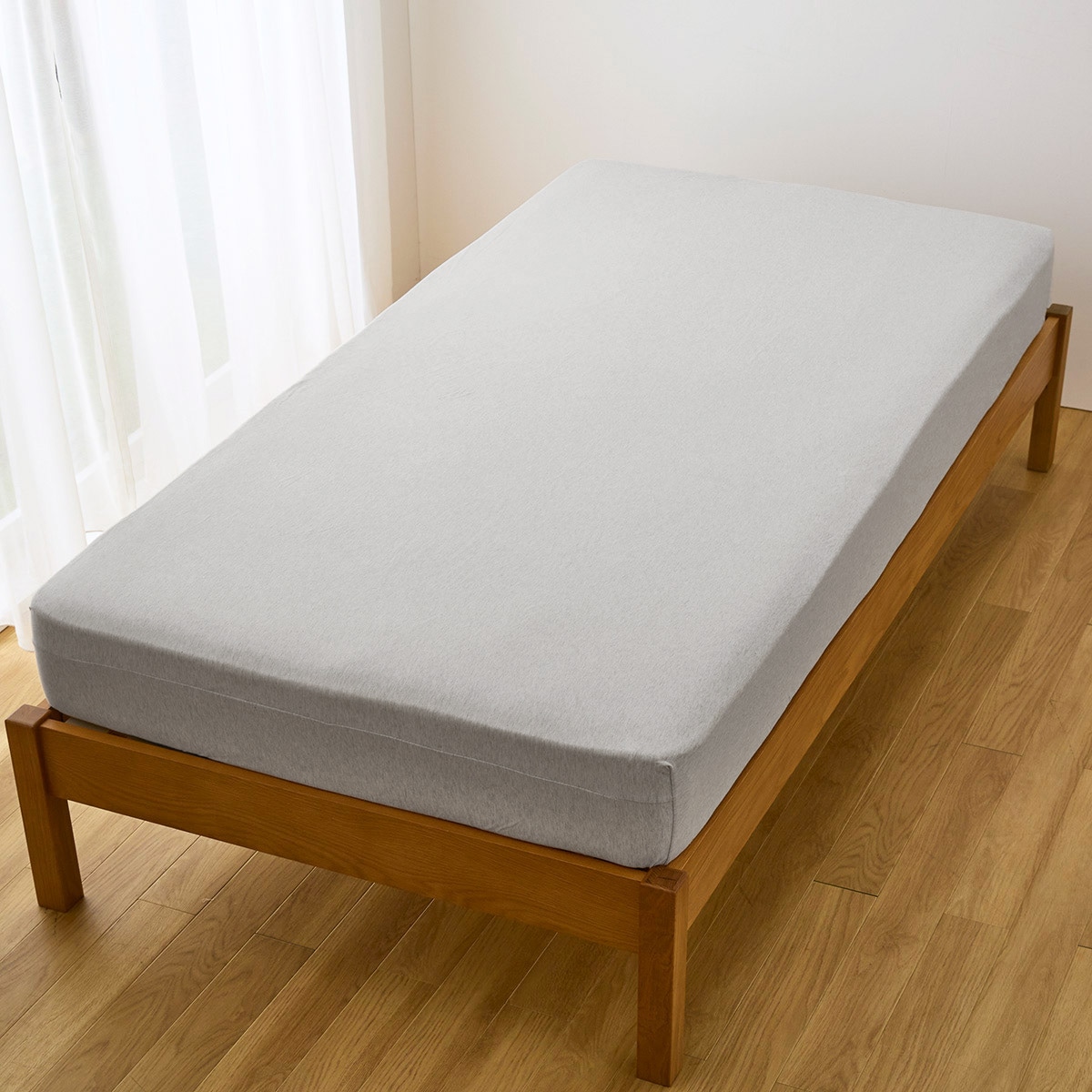 肌にやさしく寄り添う、綿100%天竺ニットのボックスシーツです。伸縮性の高い天竺ニットはやわらかくて肌になじむから快適。Tシャツや肌着にも使われる生地だから、こすれてもガサガサとした嫌な音がしないので心地よく眠れます。肌あたりの心地よさにこだわりたい方に特におすすめの商品です。ご家庭の洗濯機で気軽に洗えるので、清潔にお使いいただけます。