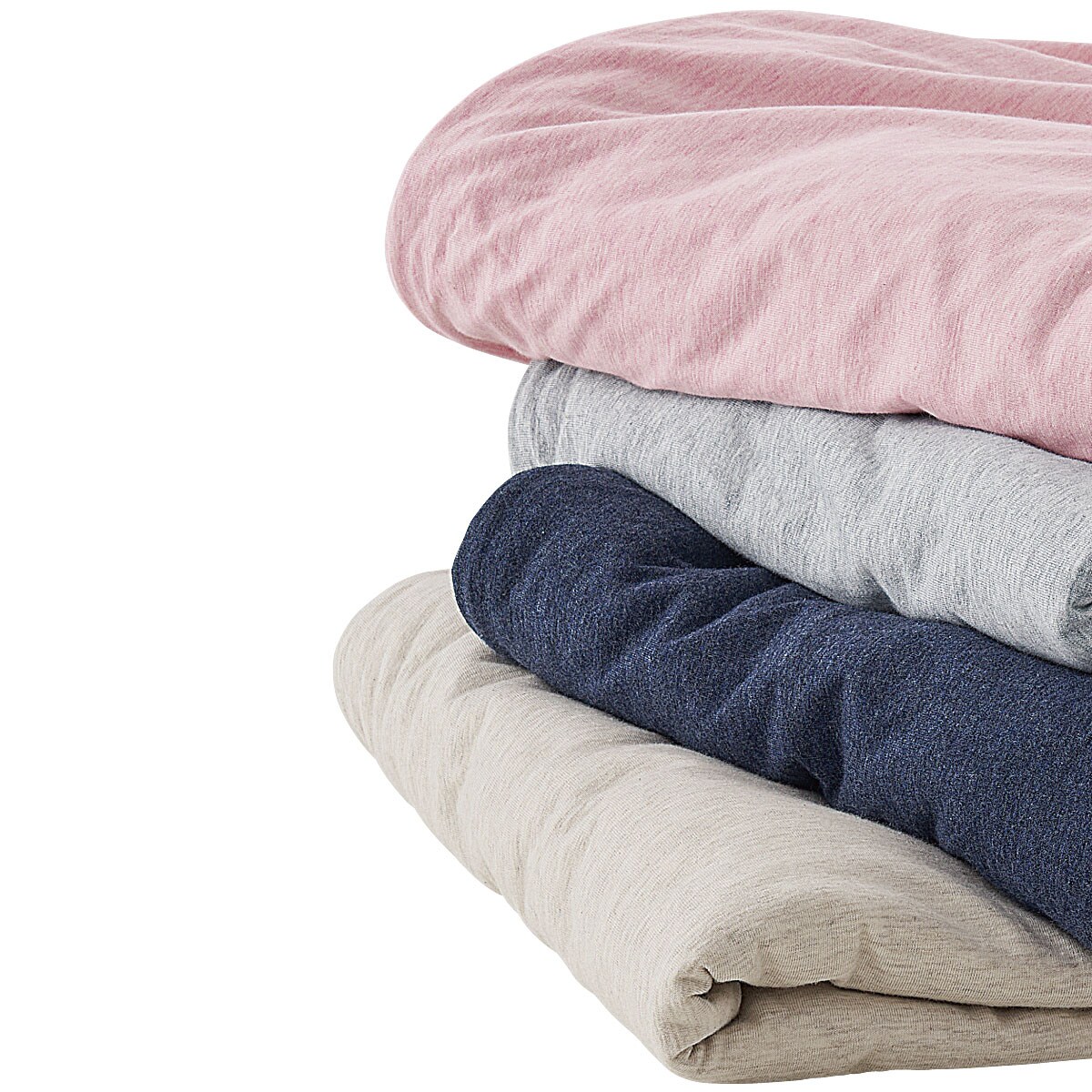 肌にやさしく寄り添う、綿100%天竺ニットのパッドシーツです。伸縮性の高い天竺ニットはやわらかくて肌になじむから快適。Tシャツや肌着にも使われる生地だから、こすれてもガサガサとした嫌な音がしないので心地よく眠れます。肌あたりの心地よさにこだわりたい方に特におすすめの商品です。ご家庭の洗濯機で気軽に洗えるので、清潔にお使いいただけます。
