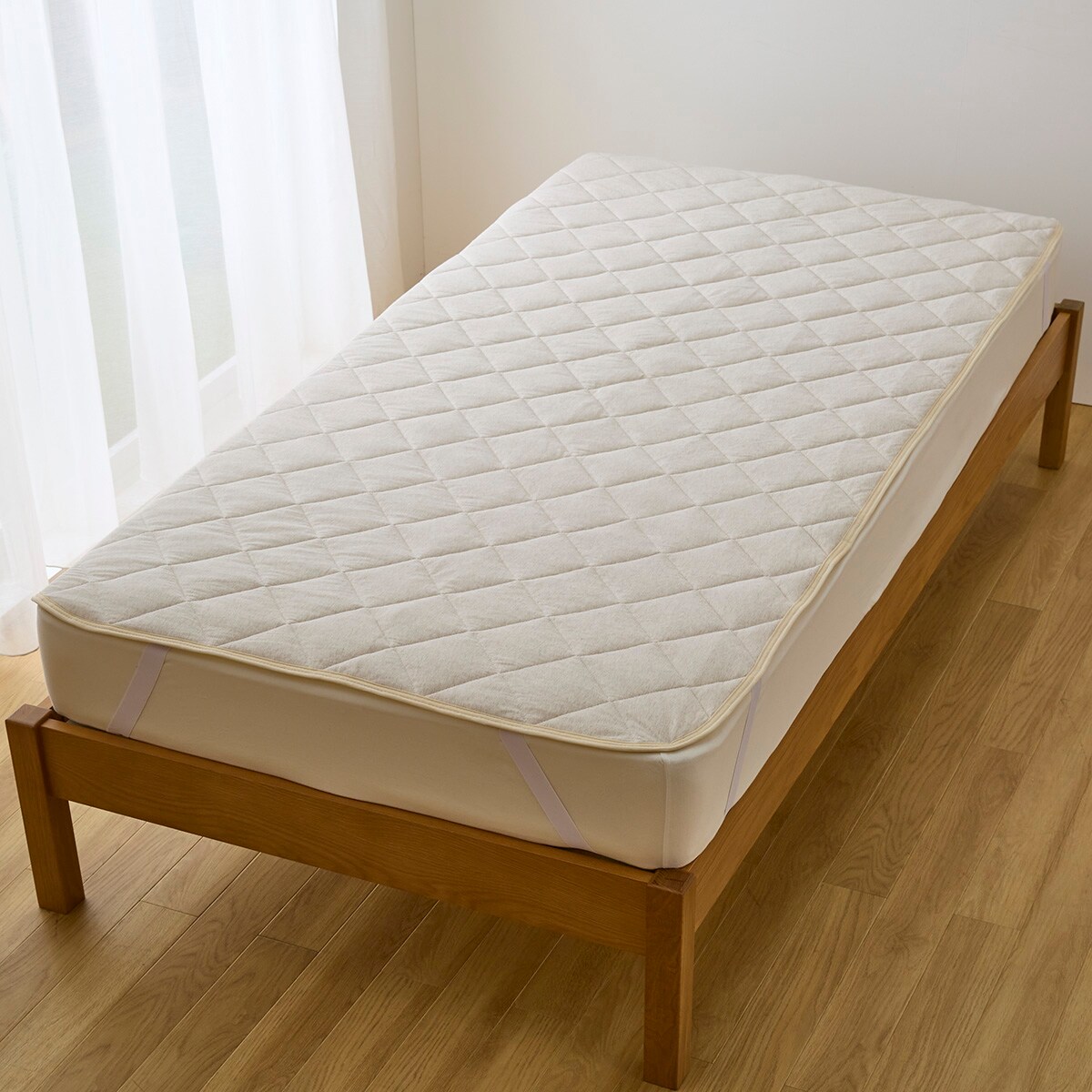 至福の肌ざわりに感動する綿100%天竺ニットのパッドシーツです。肌なじみの良いやわらかい生地で心地よく快適にお休みいただけます。