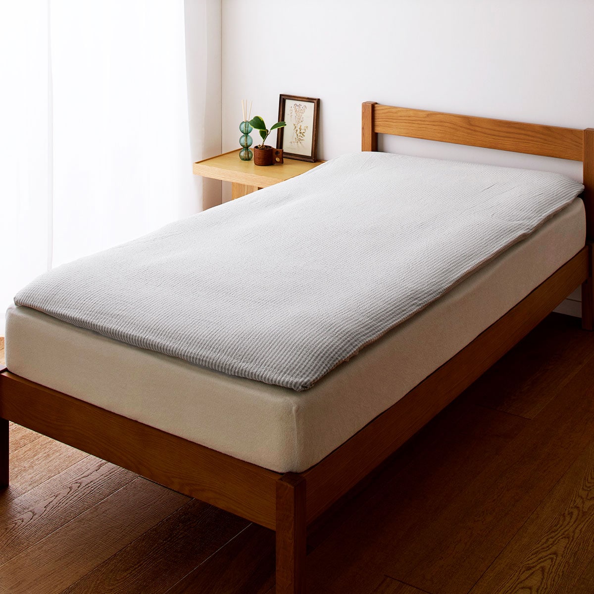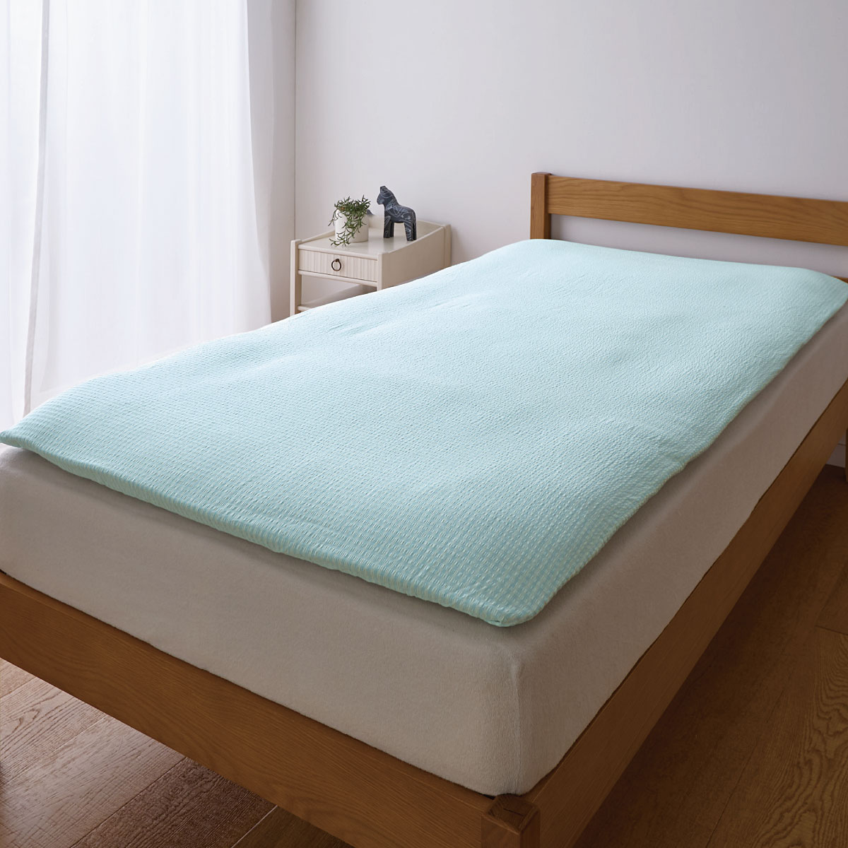 表面にポコポコした凹凸感があるため肌ばなれがよく、やさしい肌ざわり。※写真は同素材のパッドシーツです。