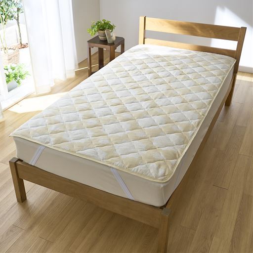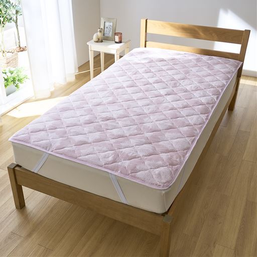やさしいぬくもりを感じる、やわらかな綿100%フランネル素材のパッドシーツです。起毛をかけているので布団に入った時にヒヤッとしにくく、ふんわりあたたかな肌ざわり。綿のやさしい肌あたりであなたを包み込みます。繊細でおしゃれなレース柄がお部屋をエレガントな印象に。裏側は四隅の強化ゴム仕様でズレにくく、セットも簡単。中わた入りのキルティングで寝心地もアップ。汚れたらご家庭の洗濯機で気軽に洗えるので、清潔にお使いいただけます。