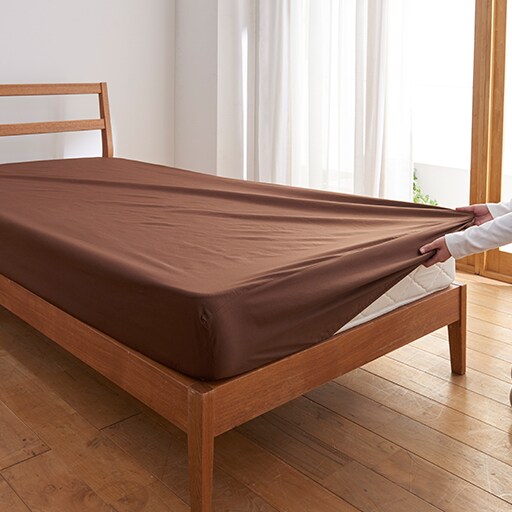 コーディネートイメージ ※商品はボックスシーツです。(上から) アイボリホワイト・コーヒーブラウン