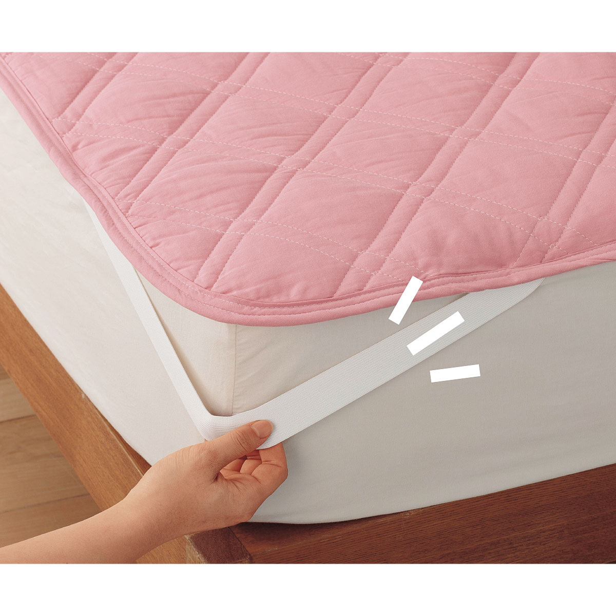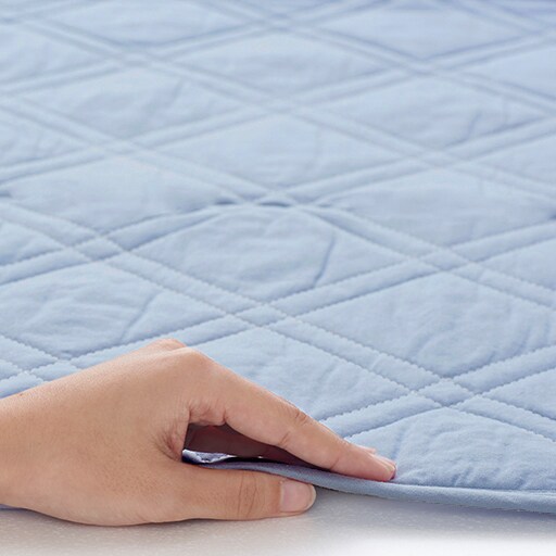 四隅の強化ゴムでズレにくく、着脱も簡単。敷き布団にも使用できます。