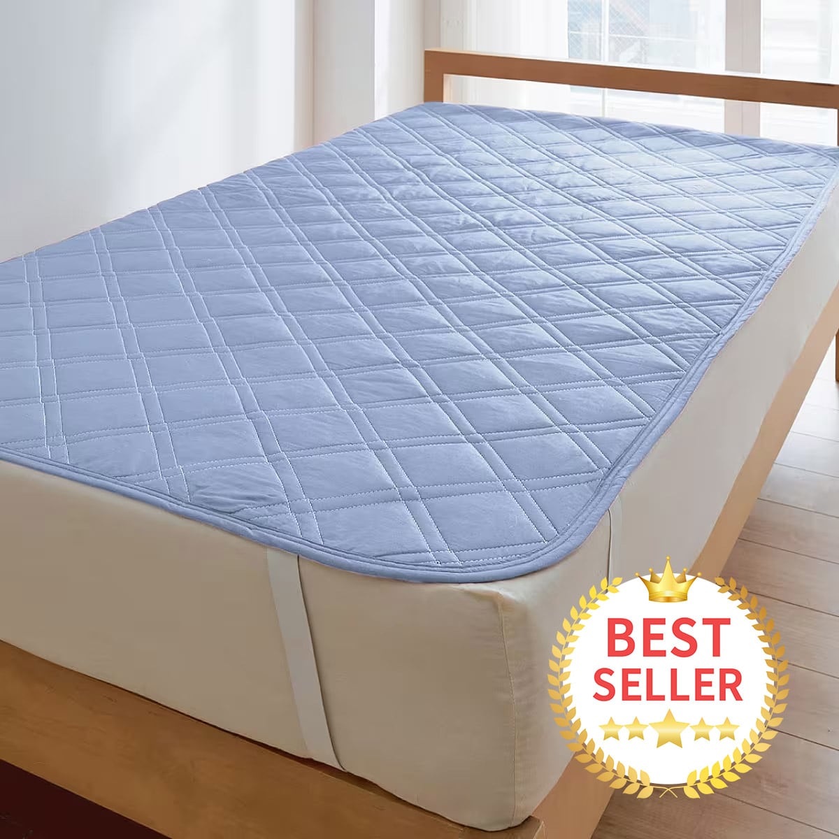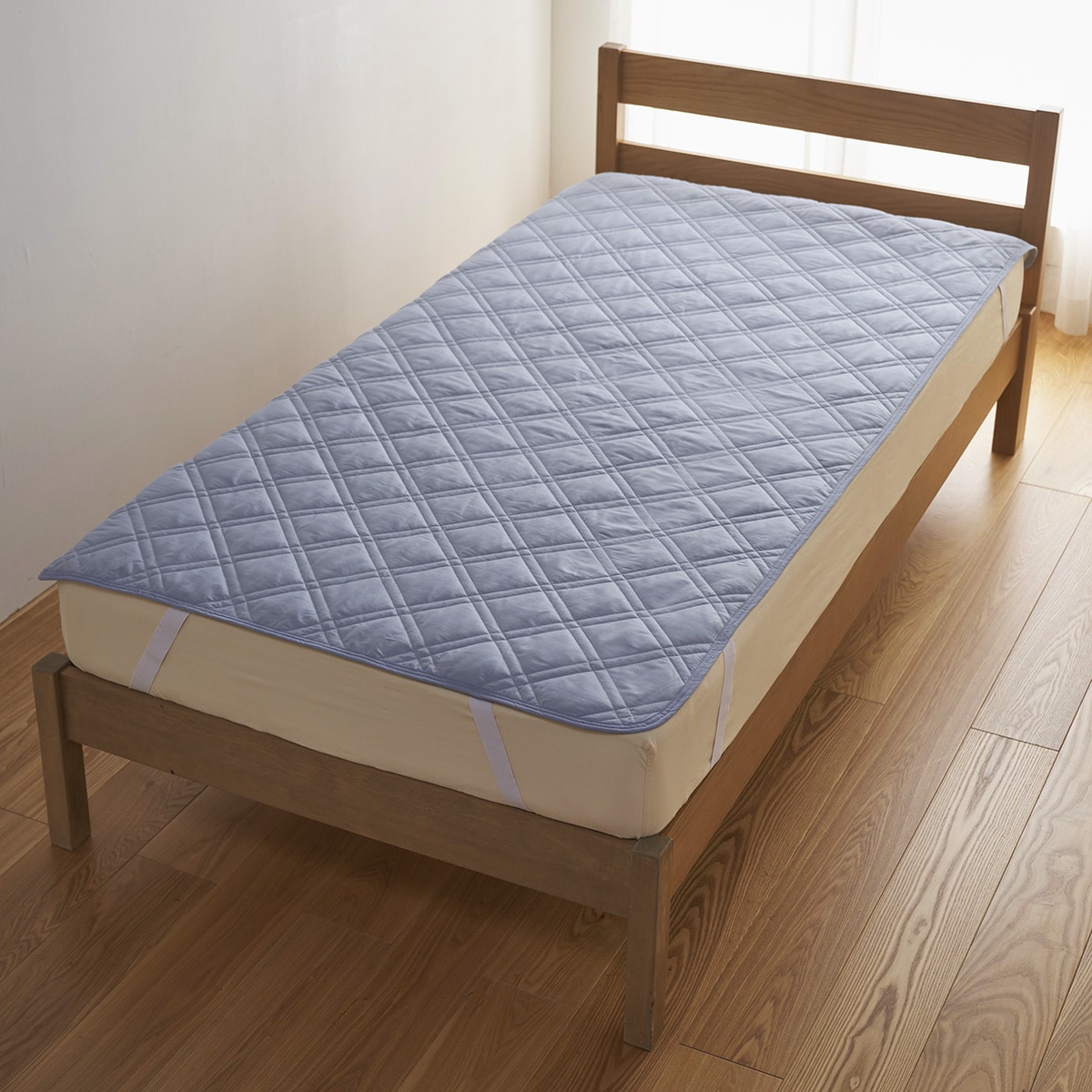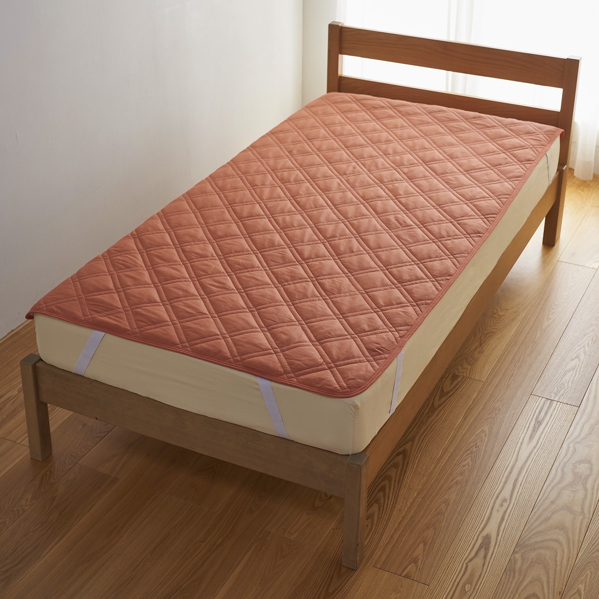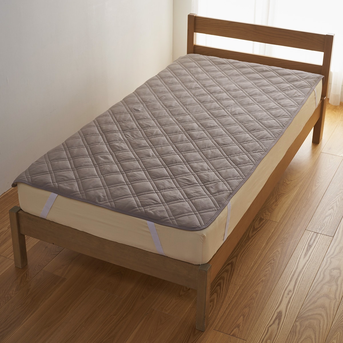 四隅の強化ゴムでズレにくく、着脱も簡単。敷き布団にも使用できます。