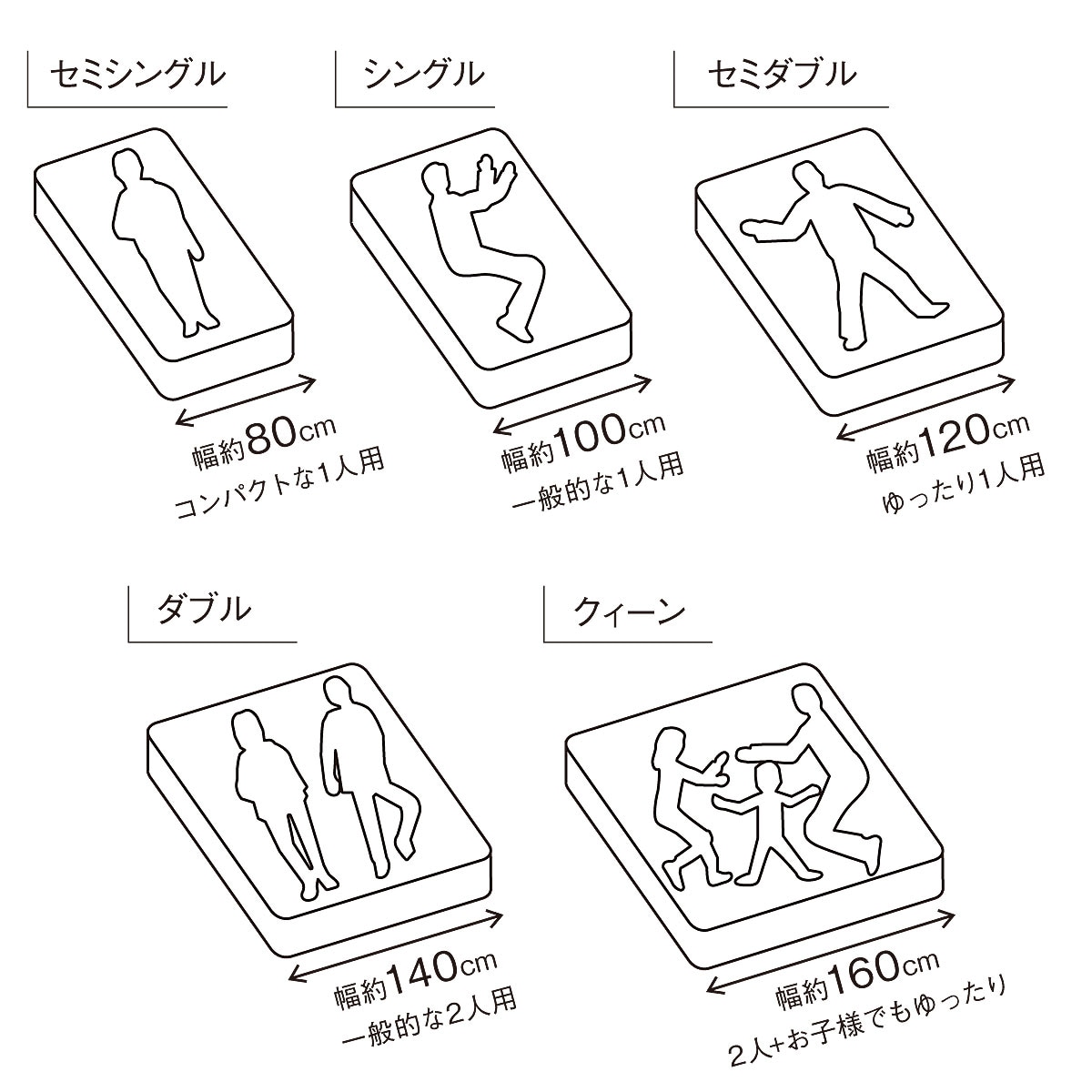 住宅事情に合わせ、様々なサイズがある寝具。綿100%ツイルシリーズなら、店頭では手に入りにくいセミシングル・クィーンなどのサイズもあります。