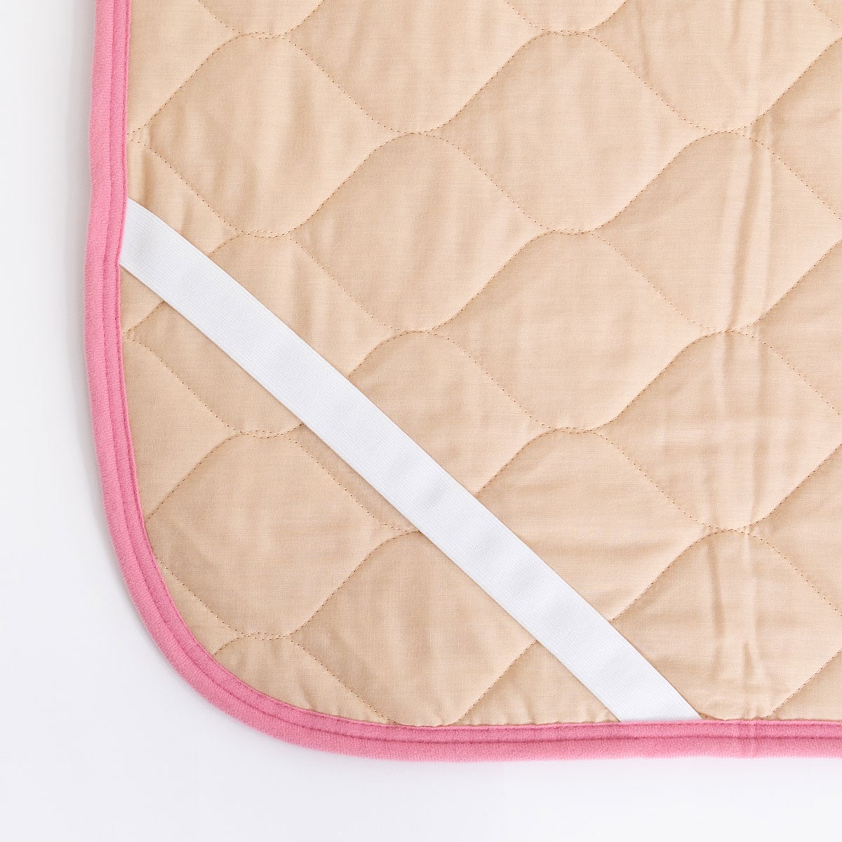 厚み約1.2cm。中わたをいれてキルトをかけているので、ふんわりした寝心地です。