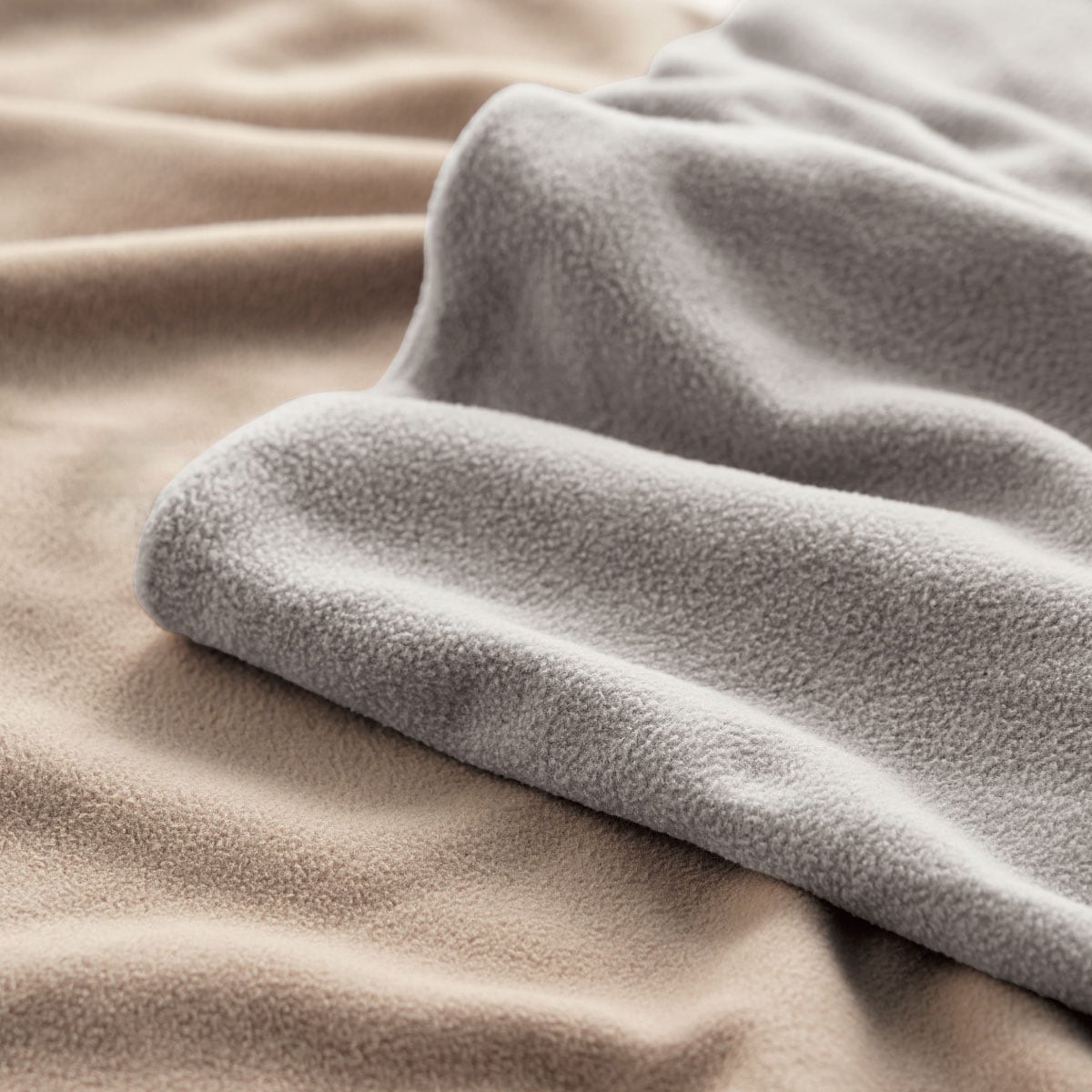 (左から) オークベージュ・ミディアムグレー起毛したマイクロフリースが空気をたっぷり抱え込み、しっかりとしたあたたかさで体を包んでくれます。