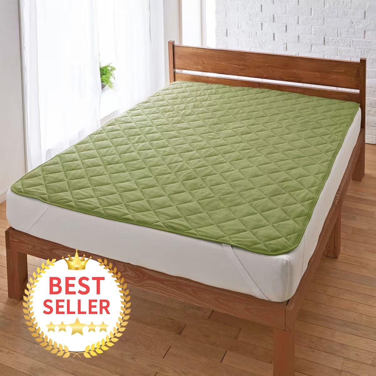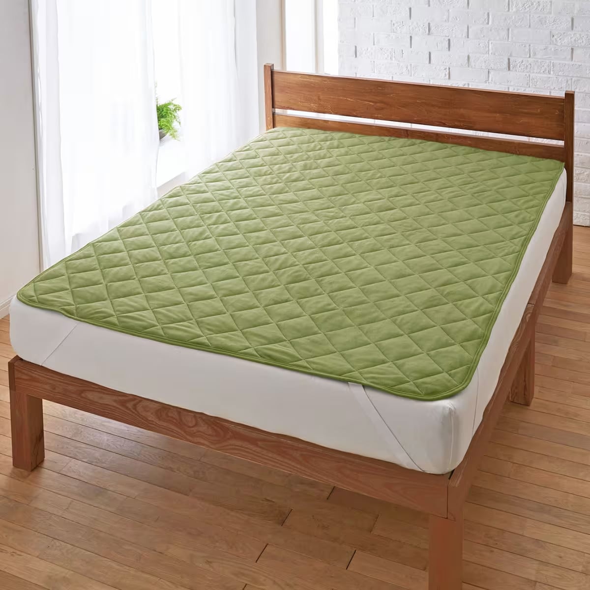 オリーブグリーンふんわりかる~いマイクロフリースのパッドシーツです。
