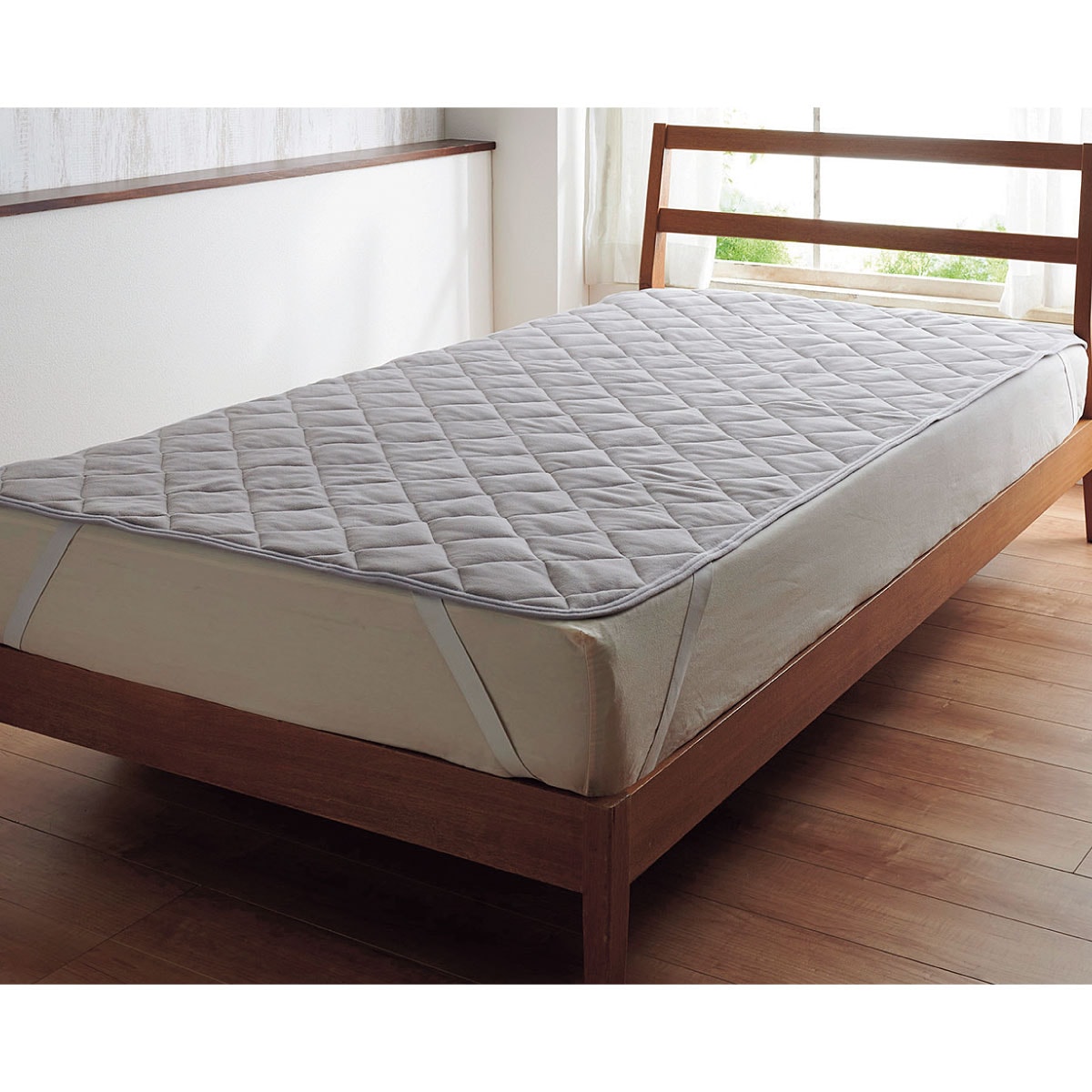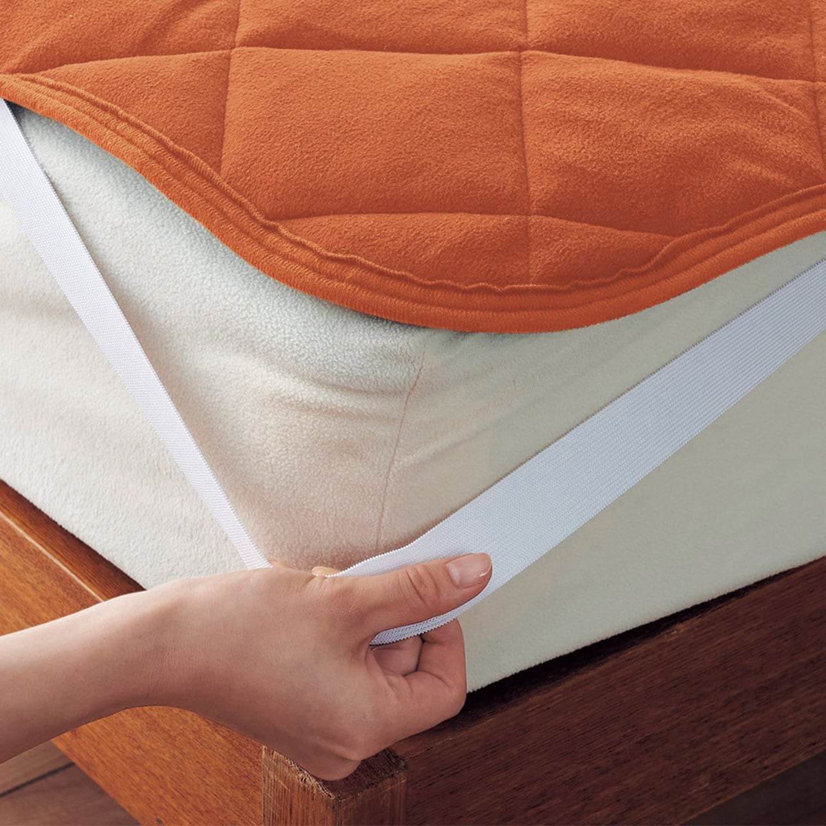 四隅の強化ゴムで、着脱も簡単。敷き布団にも使用できます。