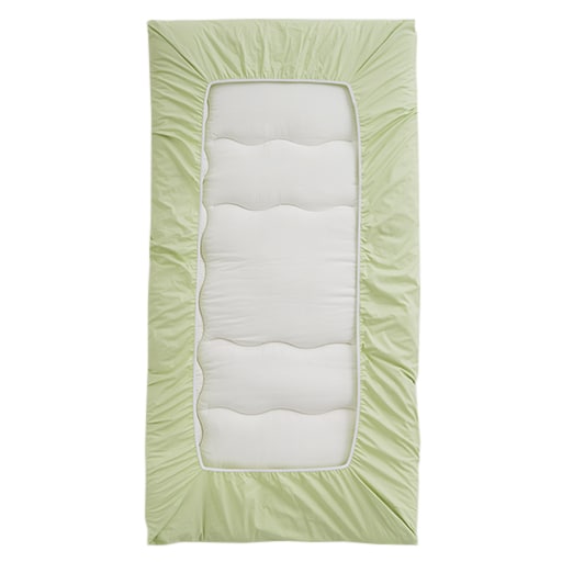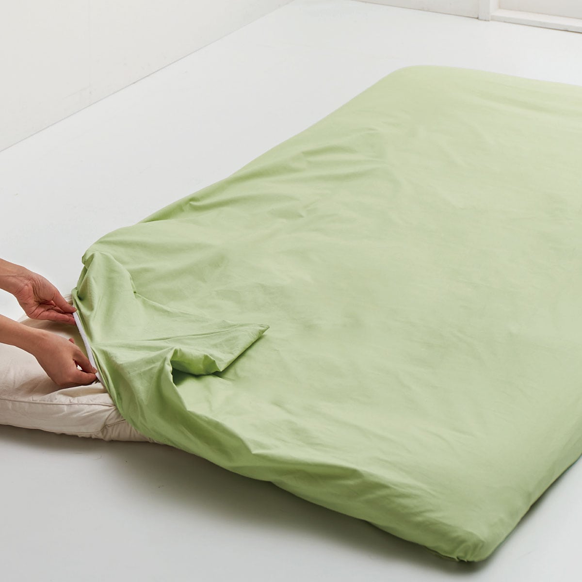 グリーン肌ざわりの良い綿100%生地を使用した、敷き布団用のフィットシーツです。