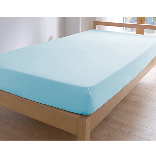 ブルー肌ざわりの良い綿100%生地を使用した、マットレス用のボックスシーツです。