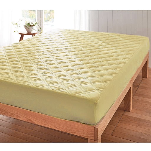 コーディネートイメージ(オリーブグリーン/クィーンサイズ)※商品はパッド一体型ベッドシーツです。