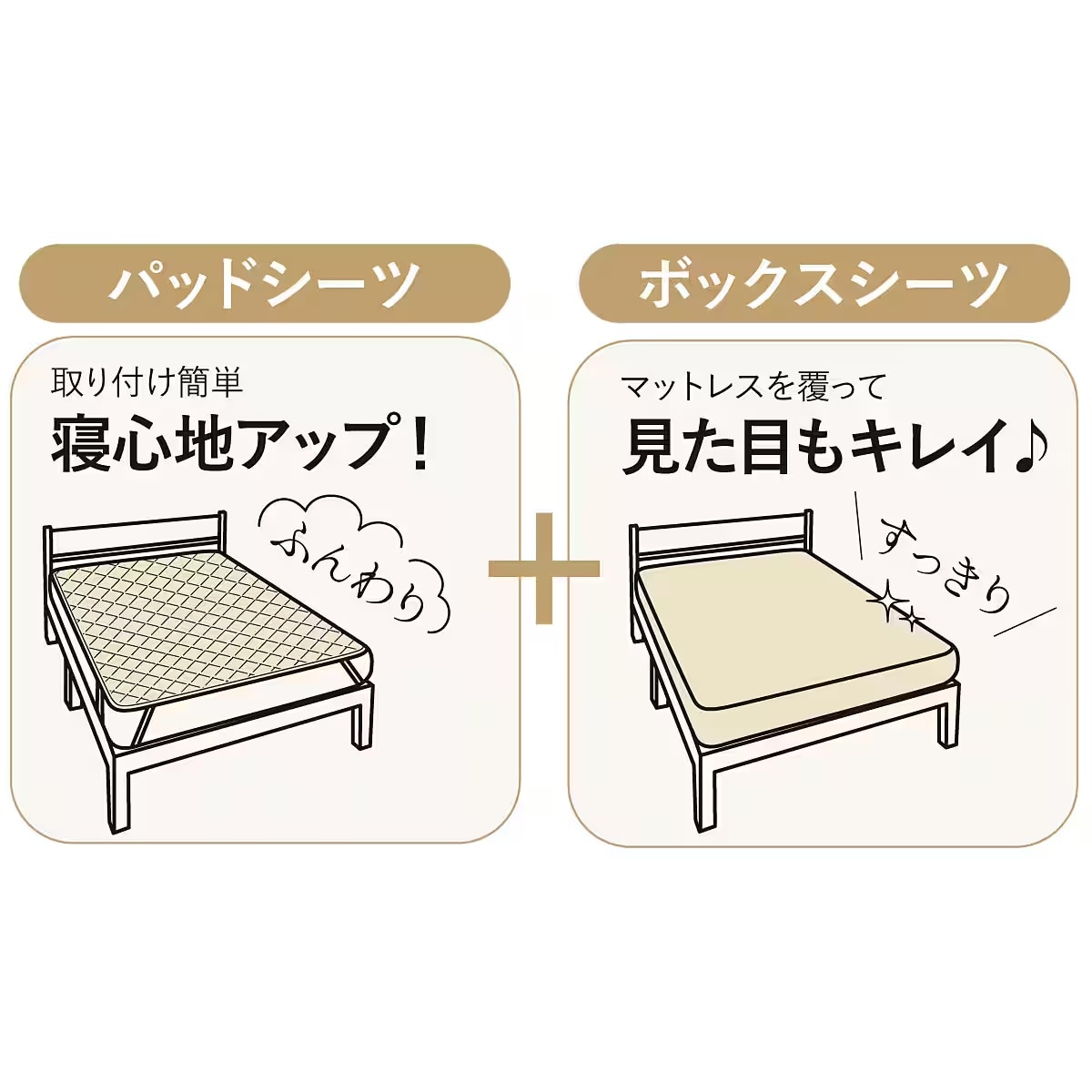 パッドシーツとボックスシーツの一体化で、手間なしズレなし。