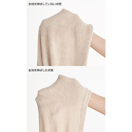 パイルのループが空気を含みふわふわとした感触。綿混だからムレにくく、汗をよく吸います。ふわふわの綿混のタオル地は年中気持ちよく使えます。