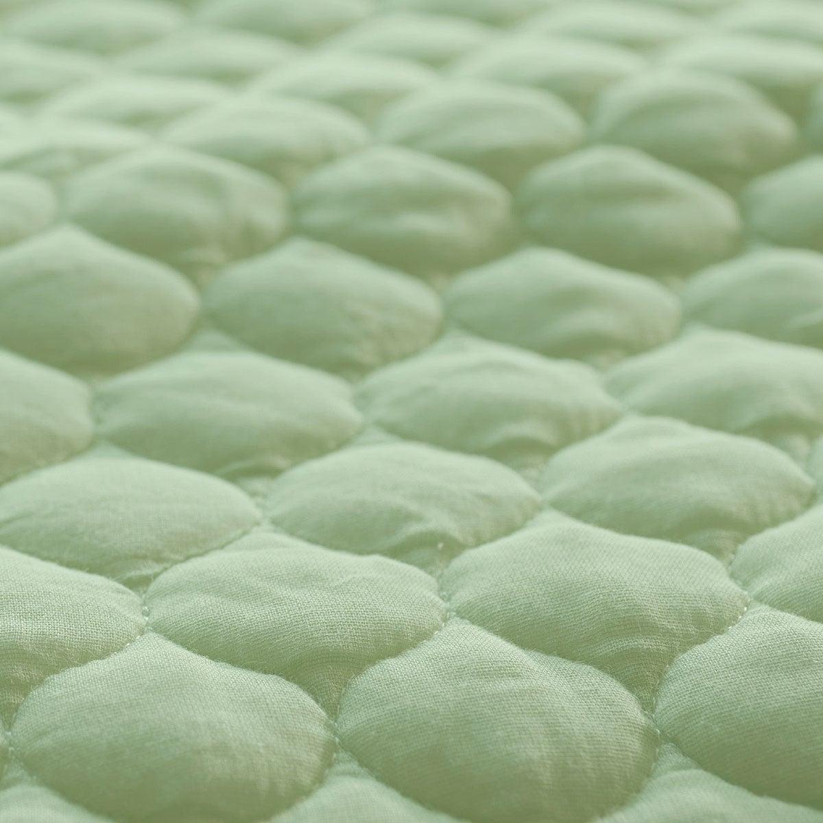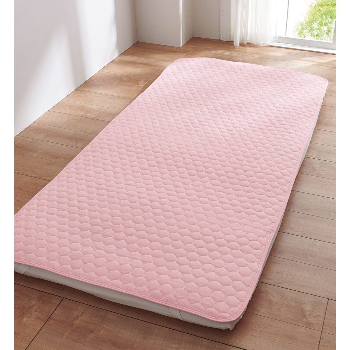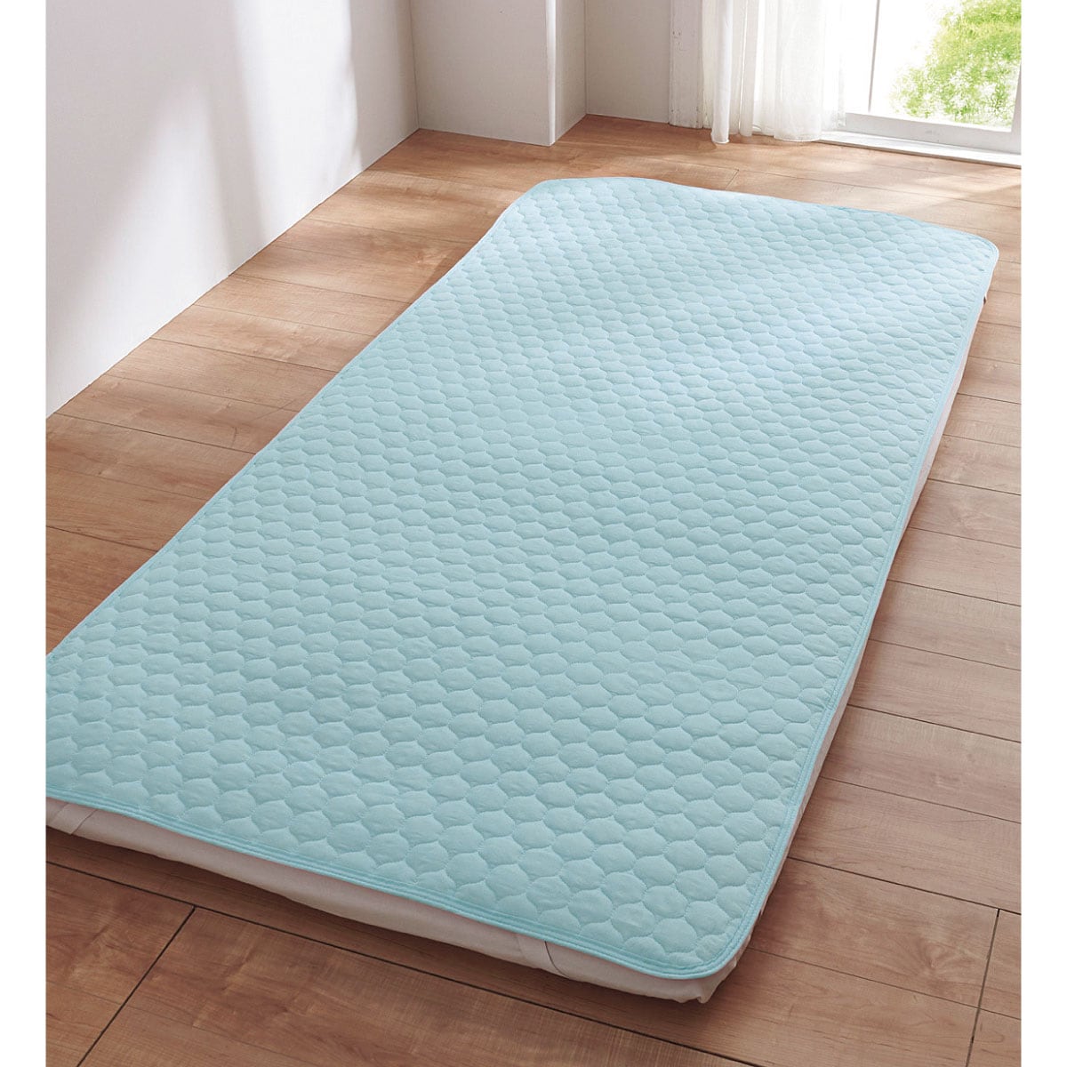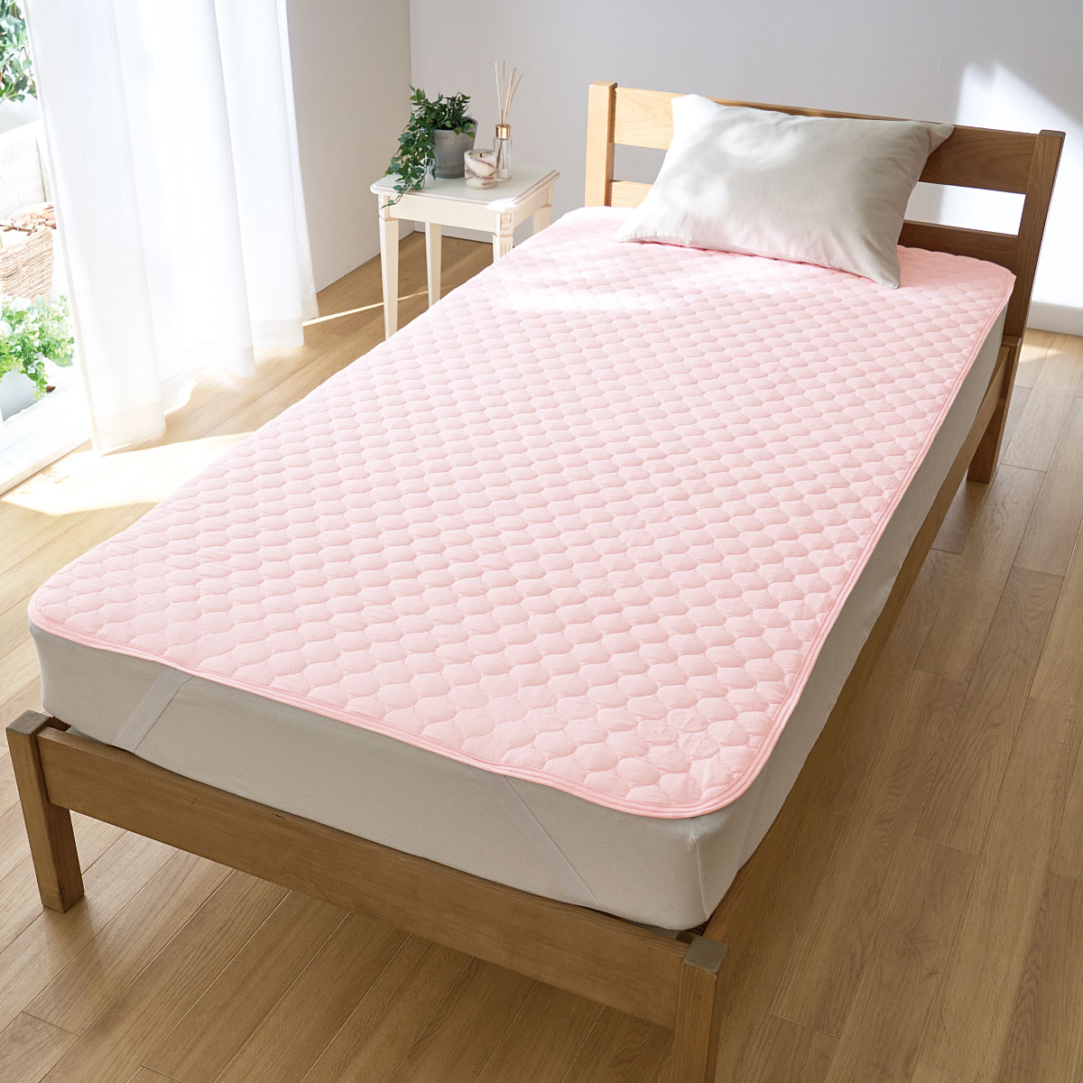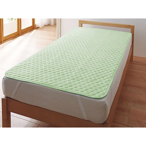 使い込むほどやわらかく、心地よさが増すガーゼ生地のパッドシーツです。中わた入りのキルティングで寝心地もアップ。敷き布団でもマットレスでも使えます。