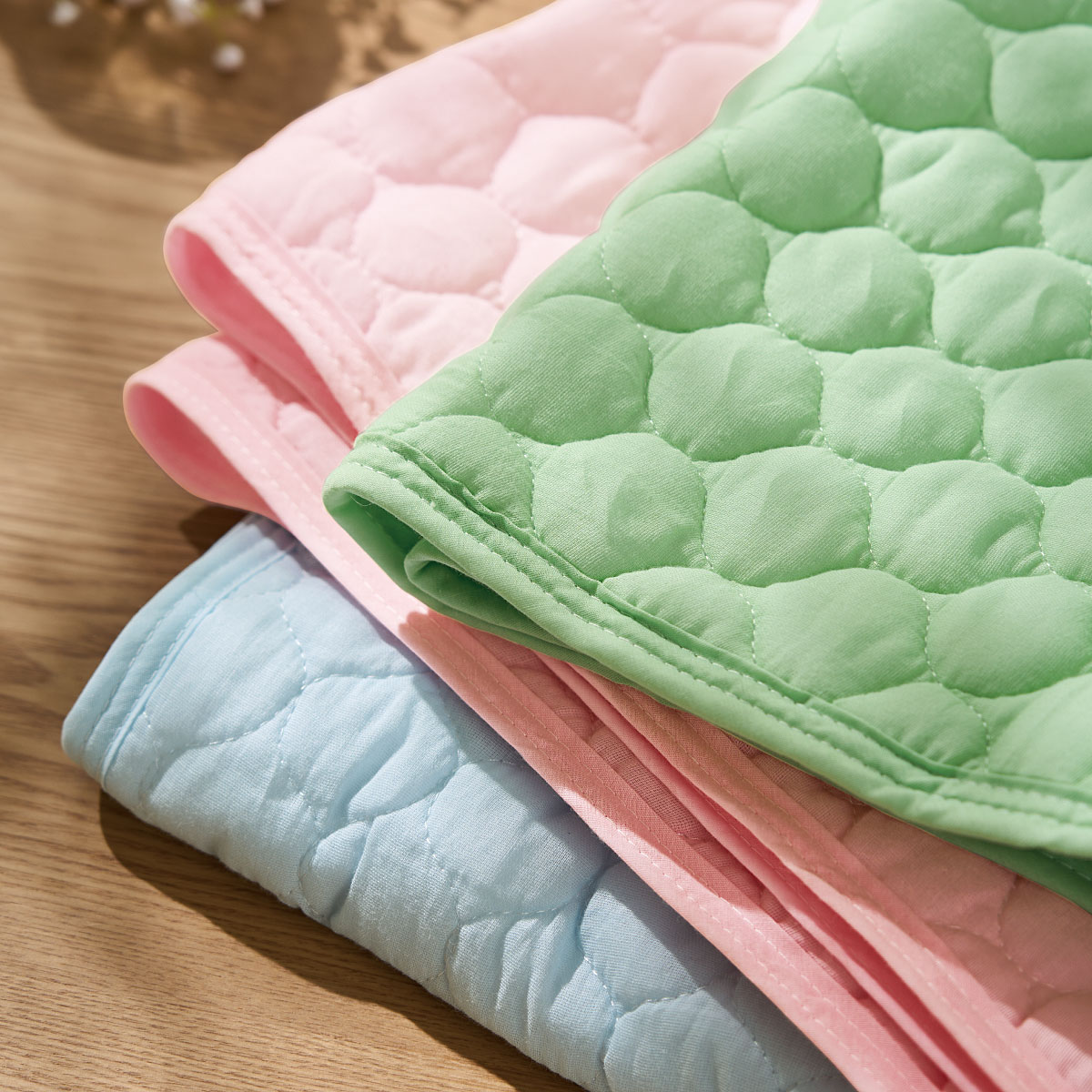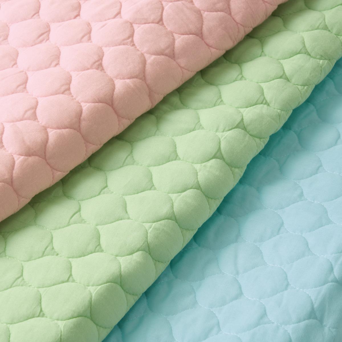 (上から) ブルー・ピンク・グリーン使い込むほどやわらかく、心地よさが増すガーゼパッドシーツです。