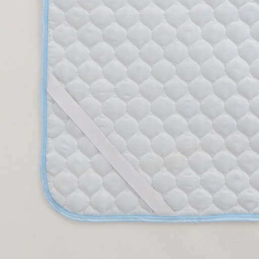 吸水性・吸湿性のある100%天然素材のコットンガーゼを表生地に使用したパッドシーツです。汗を吸ってもベタつきにくく、洗うたびに柔らかくなるやさしい肌ざわりが心地いい。中わた入りのキルトなのでふんわりと寝心地もアップ。裏側は四隅強化ゴム仕様でズレにくく、セットも簡単。ご家庭の洗濯機で気軽に洗えるので、清潔にお使いいただけます。