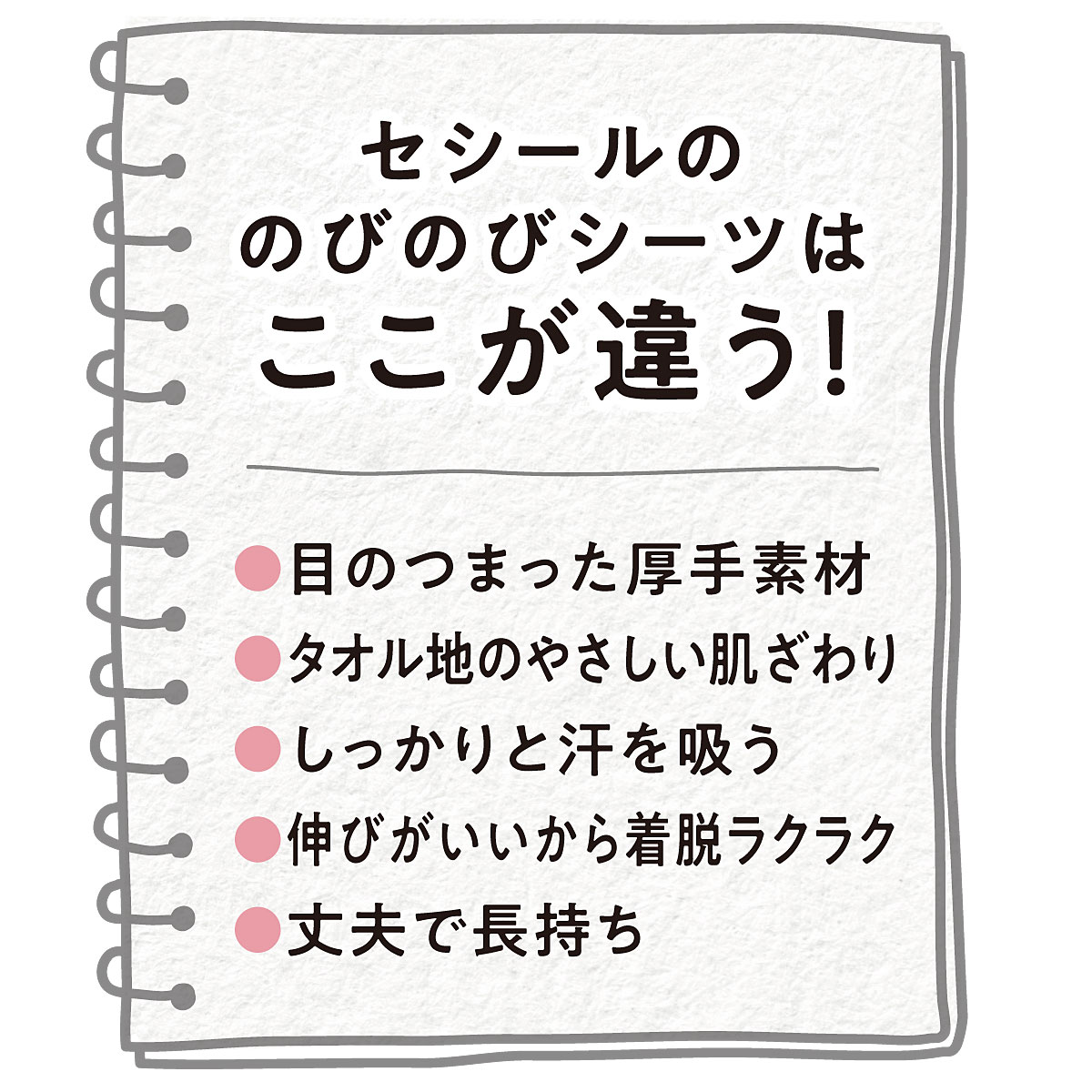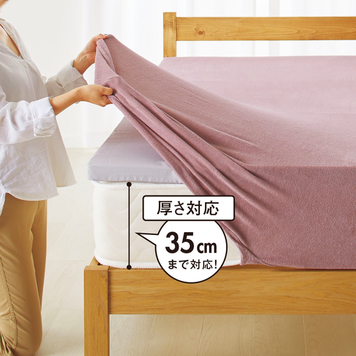 分厚いベッドマットレスにもつけられるシーツが欲しいという声にお応えした、厚み約35cmのマットレスまで対応可能なのびのびシーツです。汗をよく吸う綿パイルのタオル生地を使用しているので、やわらかな肌ざわり。1年中気持ちよく使えます。縦にも横にも伸縮するので、くしゃくしゃになりがちなシーツ交換も簡単にぴったりフィット。ソファベッドや厚みのあるトッパー・敷き布団をあわせて使っている方にもおすすめです。毎日の家事を少しラクにする、セシールおすすめの人気商品です。