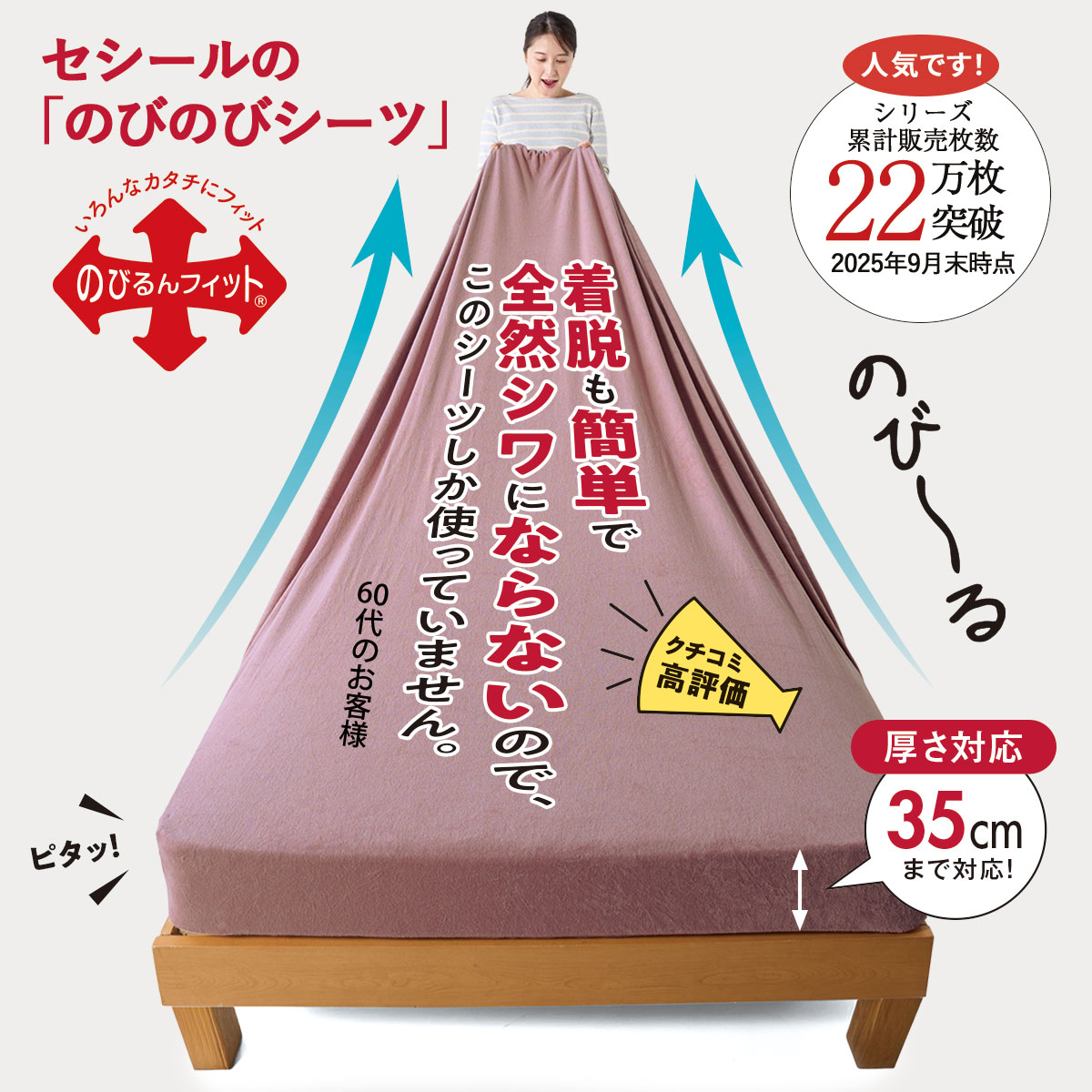 のびのびシーツのおすすめポイントシワになりにくく、きれいにフィット!