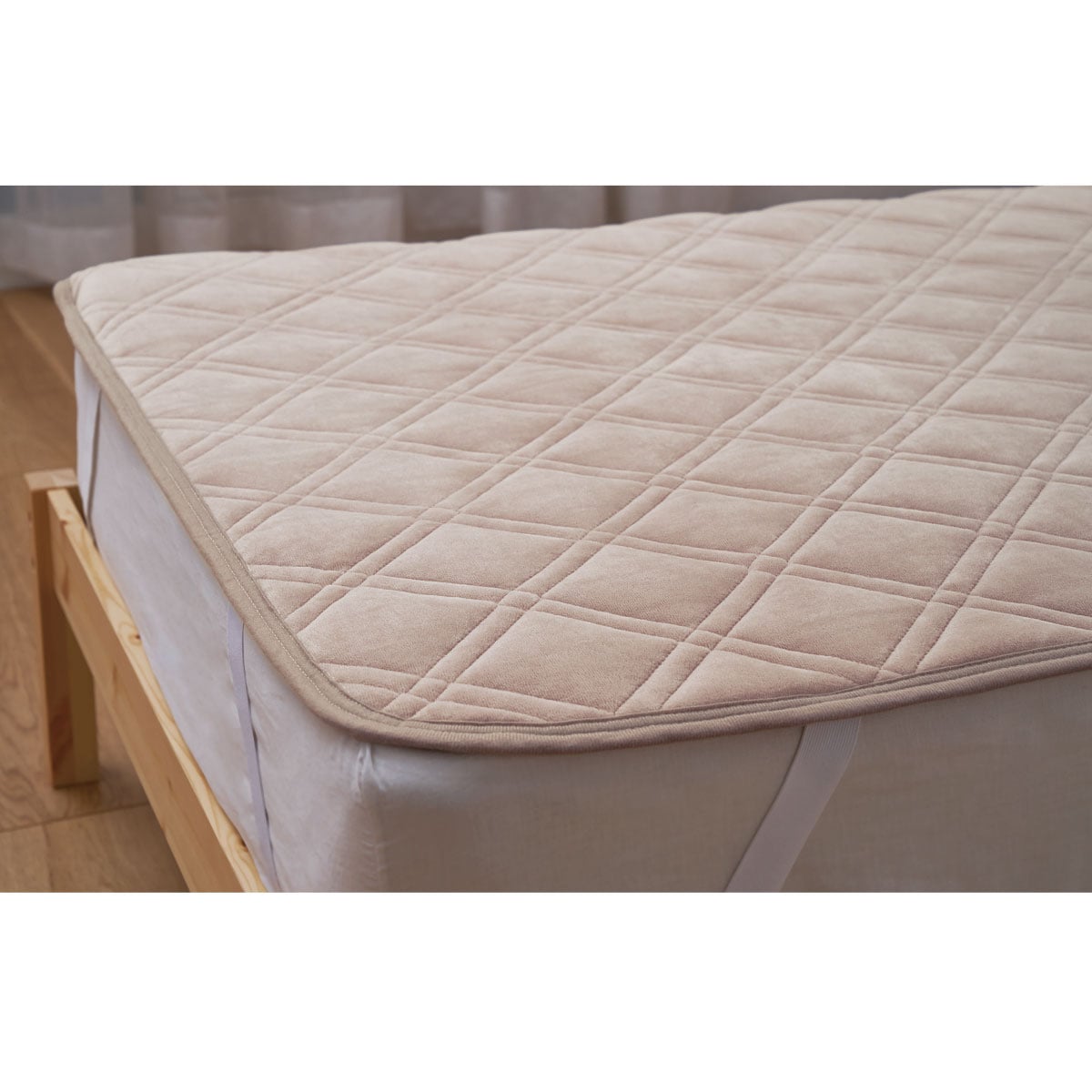 ブラウン・ベージュ静電気防止加工を施した、綿ベロア素材のあったかパッドシーツです。