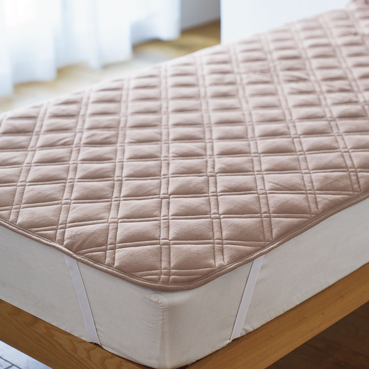 ブラウン・ベージュ静電気防止加工を施した、綿ベロア素材のあったかパッドシーツです。