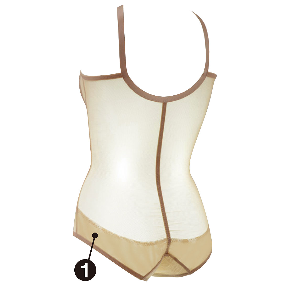 ノンワイヤーの額縁カップでバストすっきり。若々しいボディラインに整えるボディスーツ 色違い2枚組セットA(ペールモーヴ)色違い2枚組 着用例