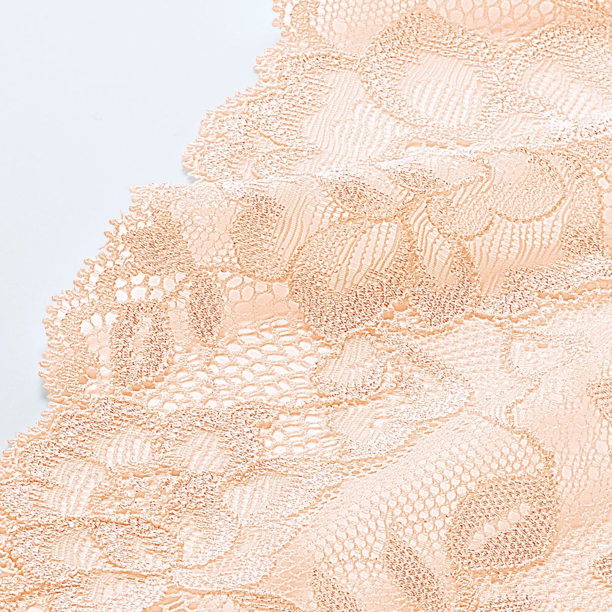 身生地には薄くてやわらかい新素材を採用し、さらに軽やかな着用感に仕上げました。美しい柄が映えるレースを贅沢に使っています。(画像は同シリーズ品番DB-309です)