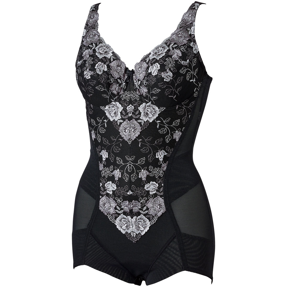 美胸も、くびれもおまかせ!高い補整力でやせ見え実現。刺繍レースのエレガントな表情でしっかり引き締め、若々しいシルエットに整えるハードタイプのボディスーツ