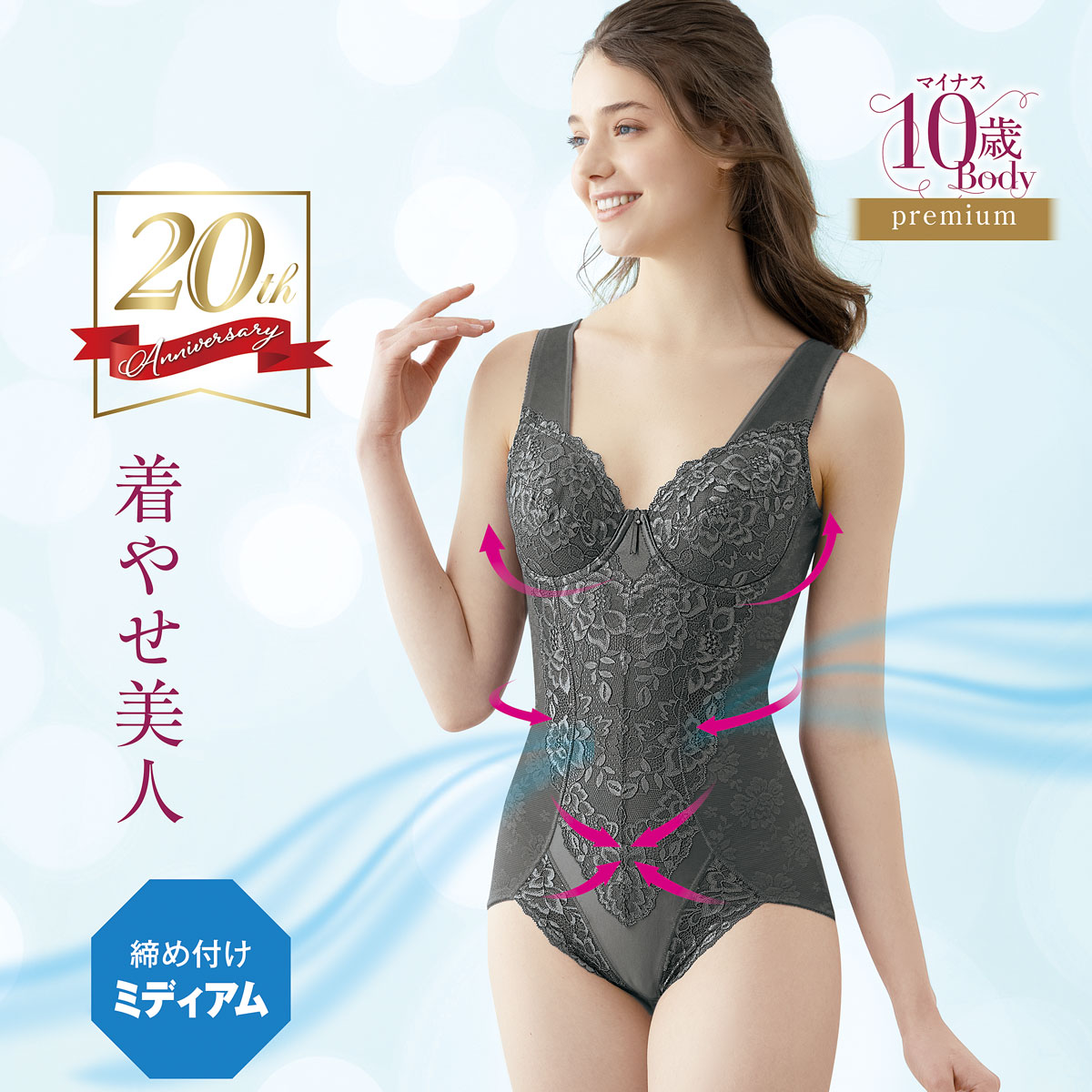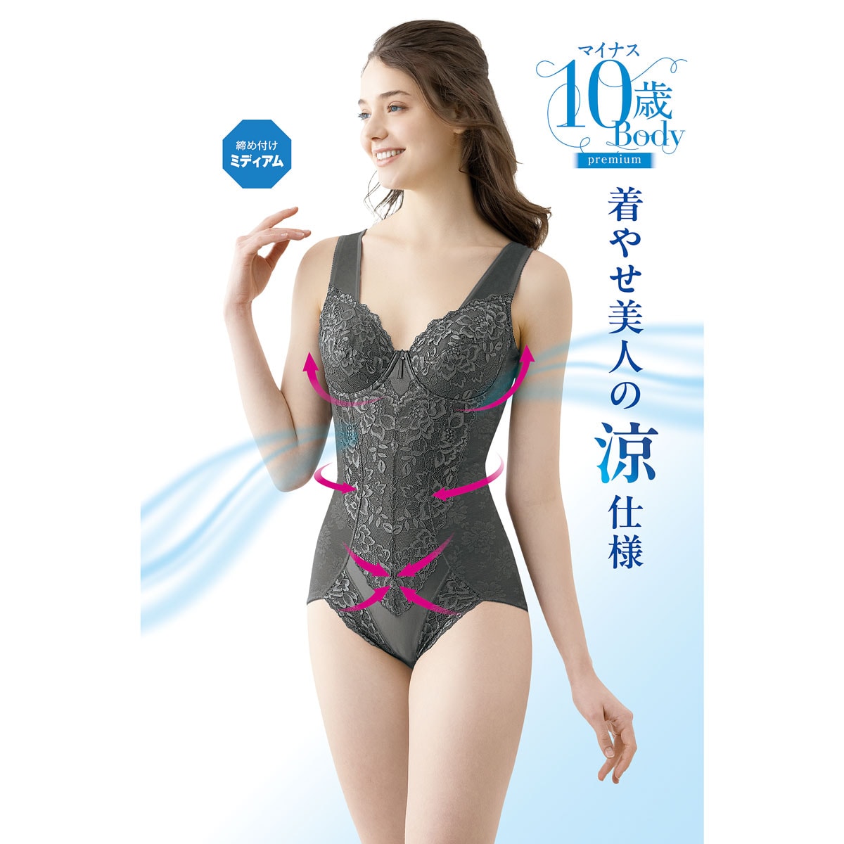 着やせ美人ボディスーツ(爽やかメッシュ素材)(ミディアムタイプ・ソフトワイヤー入り)