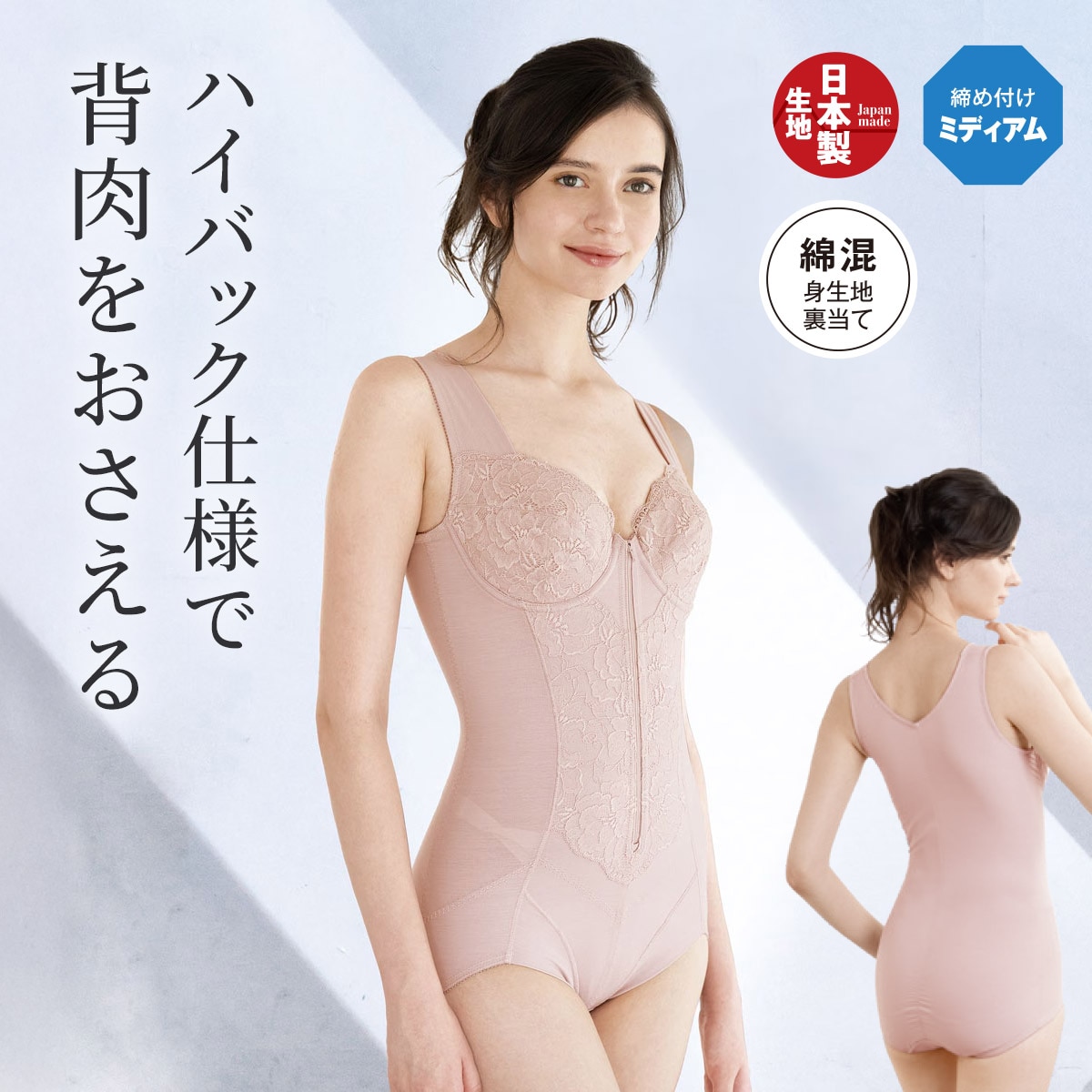 ファスナー付きで着やすい綿混素材のボディスーツ(ミディアムタイプ・ソフトワイヤー入り)