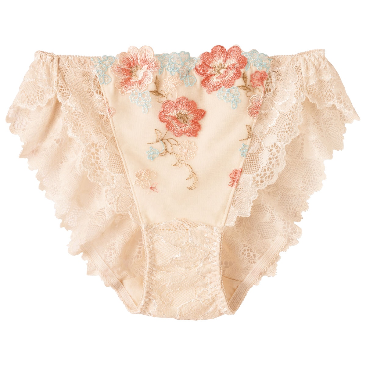 花刺しゅうやレースをふんだんに、大人がときめく可愛さをちりばめた【華やぎをまとう刺繍レースショーツ】